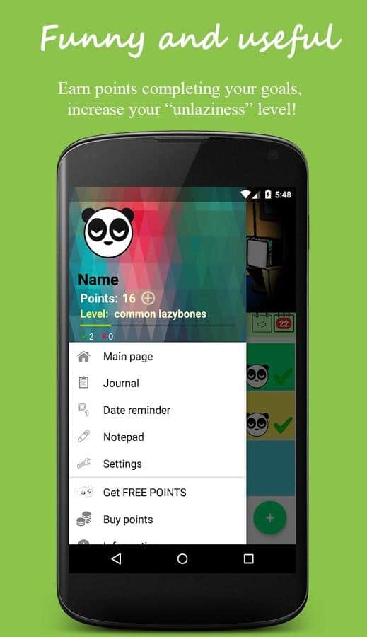 Бонусные баллы за выполнение каждой поставленной цели и повышение уровня "антилентяйства"