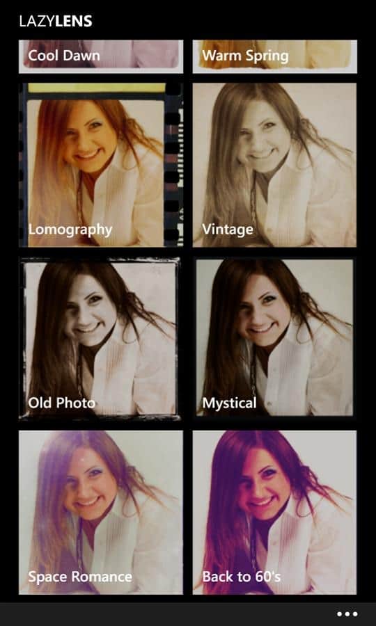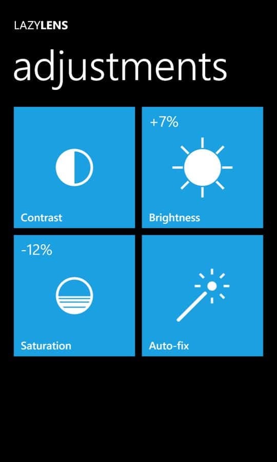 LazyLens - быстрый и гибкий фоторедактор для windows phone, позволяет вам творить в одно прикосновение пальца. В приложении находятся стандартные корректировки, такие как яркость, контрастность и насыщенность, а также обрезка и наклон со сдвигом, и многое другое. С помощью этого приложения вы сделаете оригинальный и не с чем несравнимые фотографии.