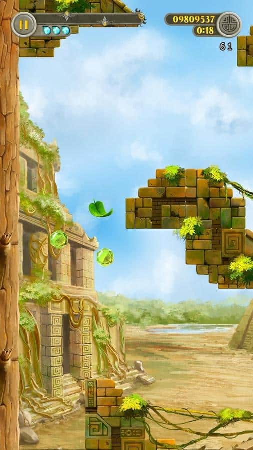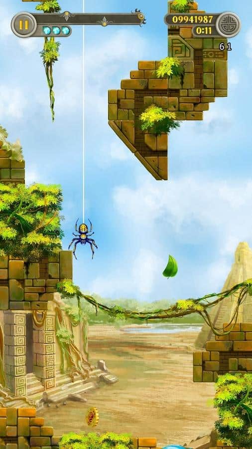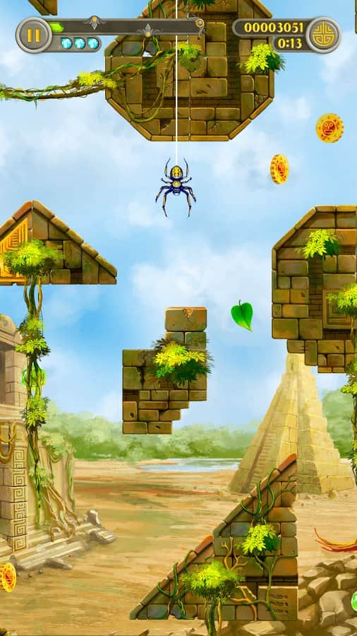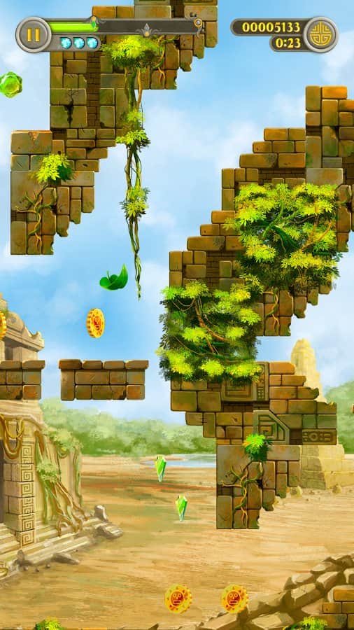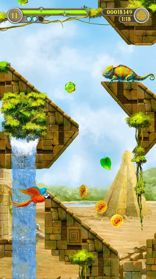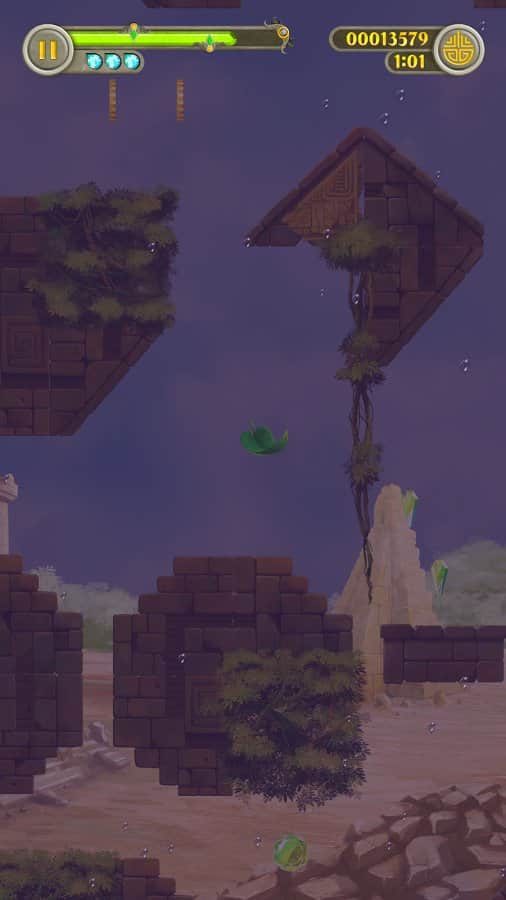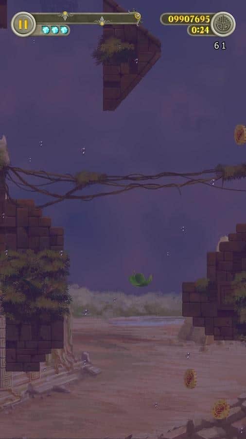 Leaffy: Jungle Run – захватывающая игра на андроид, где вы будете управлять полетом зеленого листочка. Наш герой упал с дерева и теперь его задачей будет пролететь как можно дольше, не столкнувшись с препятствиями на пути. Направляйте листик в том или ином направлении, используя для этого потоки воздуха. Ускоряйте или замедляйте движение листика, а также изменяйте его направление. Не допускайте того чтобы листик сталкивался с развалинами древнего города или обитателями древних руин. По пути не забывайте собирать энергию и применять многочисленные усиления и бонусы. Играйте в эту игру и наслаждайтесь увлекательным игровым процессом.