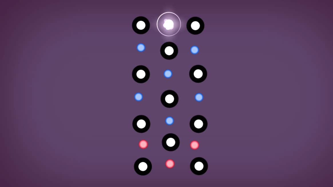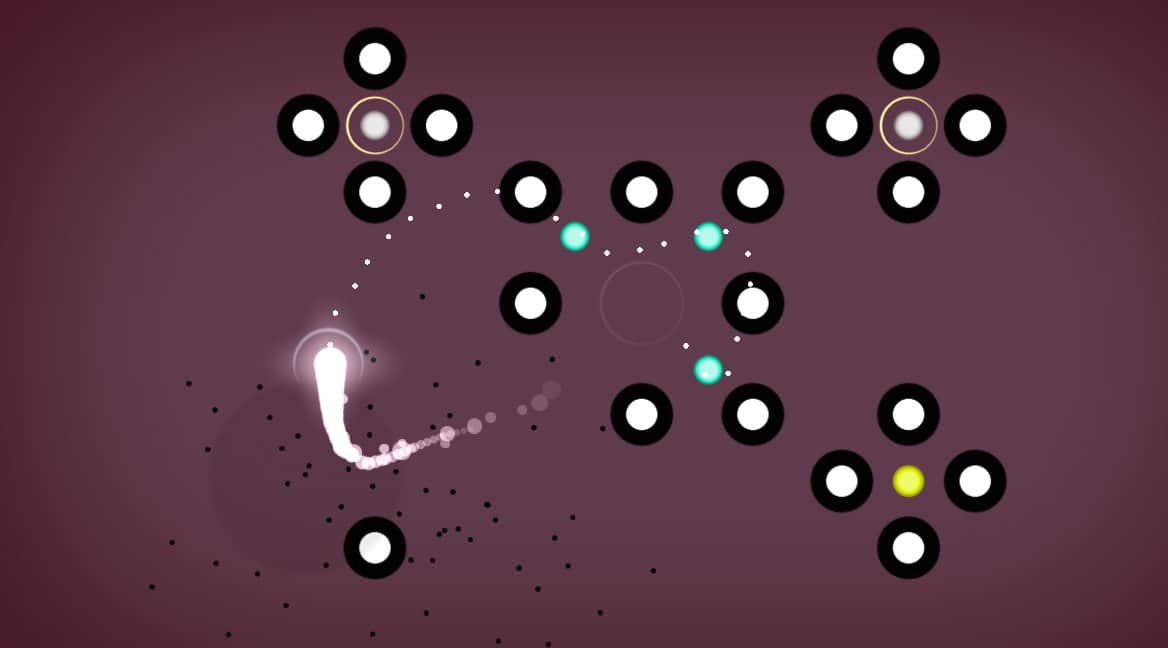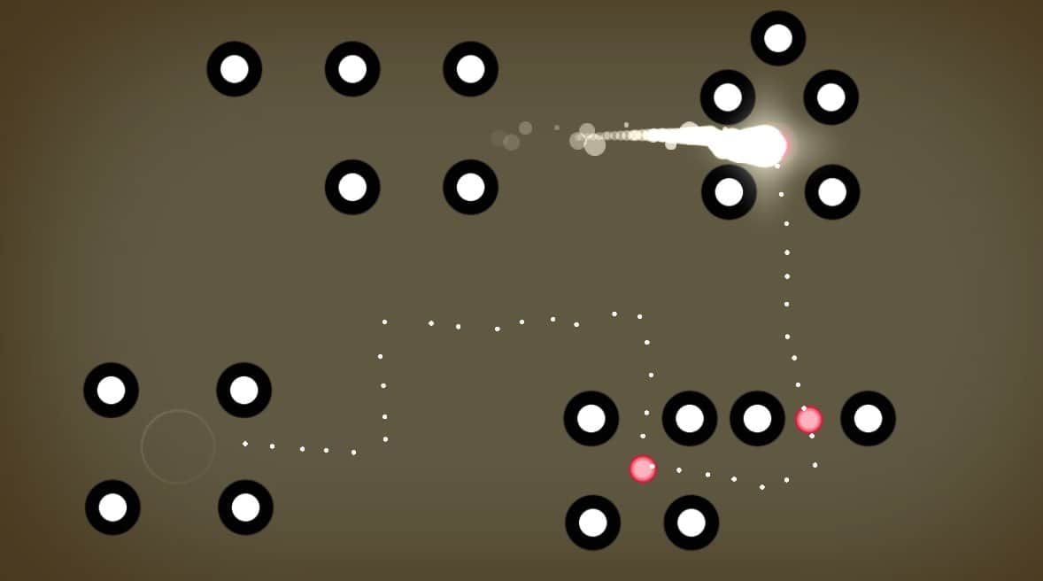 На поле есть белая анти-материя или светящаяся точка, расставлены цветные шары в разных частях экрана и препятствия в виде крупных фишек. Цель одна - провести главного героя так, чтобы он собрал все нужные объекты и вернулся на место изначального положения. Сложность заключается в том, что возможная длина пути ограничена.