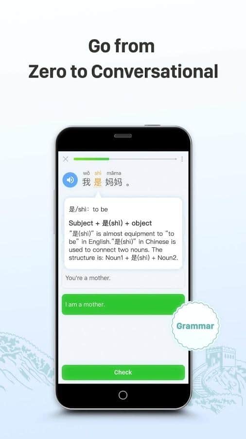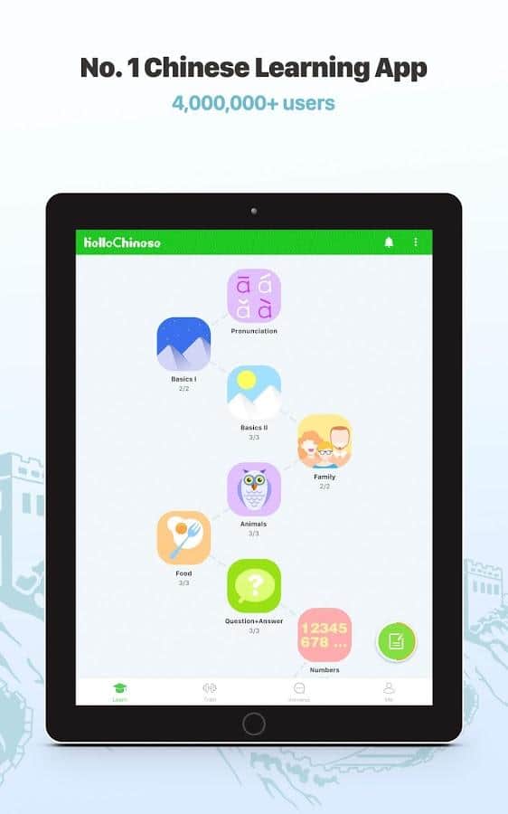 Учим китайский - HelloChinese - это приложение для всех возрастов, ведь оно сделано в виде обычной игры где вам предстоит весело изучать Китайский язык. В отличии от большинства приложений, здесь на вас не свалят сразу слова или иероглифы, а научат самым основам и только потом начнут учить на примерах. Для тех кто больше воспринимает изучение на слух, есть звуковое сопровождение а значит все уроки будут озвучены и при желании вы сможете их послушать.