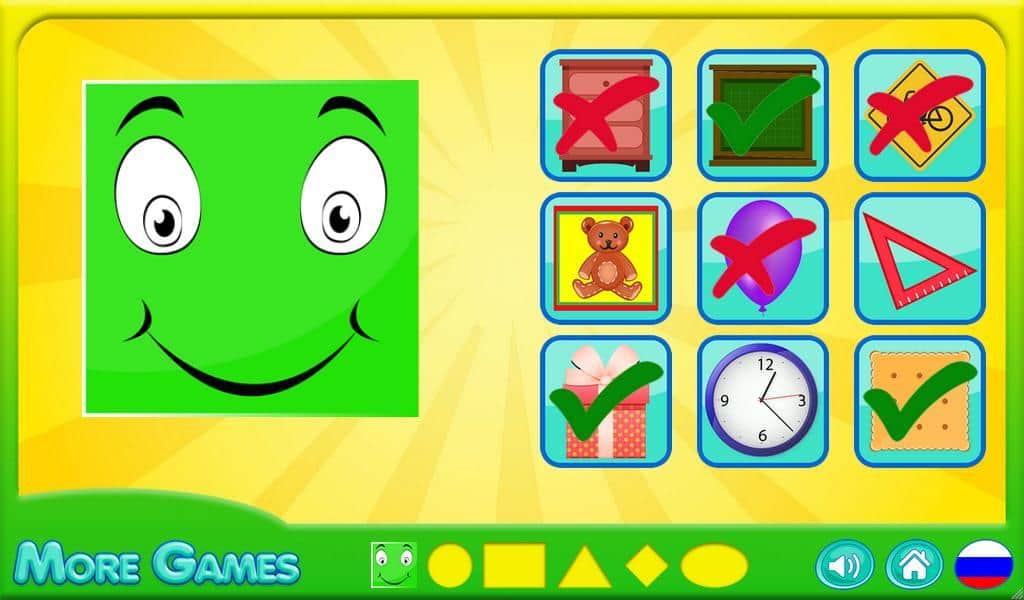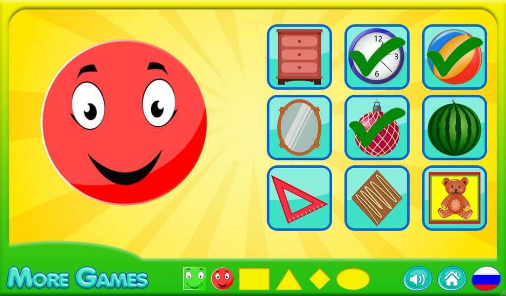 Learn shapes – отличная игра для детей дошкольного возраста, где они будет изучать геометрические фигуры. Все окружающие нас вещи имеют определенную форму вот например: мяч-круглый, телевизор-прямоугольный, комод-квадратный и так далее. Эта игра предназначена для детей с 2 до 3 лет, когда малыш только начинает изучать мир и способен различать фигуры. Покажите эту игру вашему ребенку и занимайтесь с ним вместе, находя нужные вам геометрические фигуры в предложенных картинках. Изучайте мир вокруг себя и осваивайте все новые фигуры. Эта игра поможет вашему малышу развивать свое пространственное мышление и увеличивать свой словарный запас.