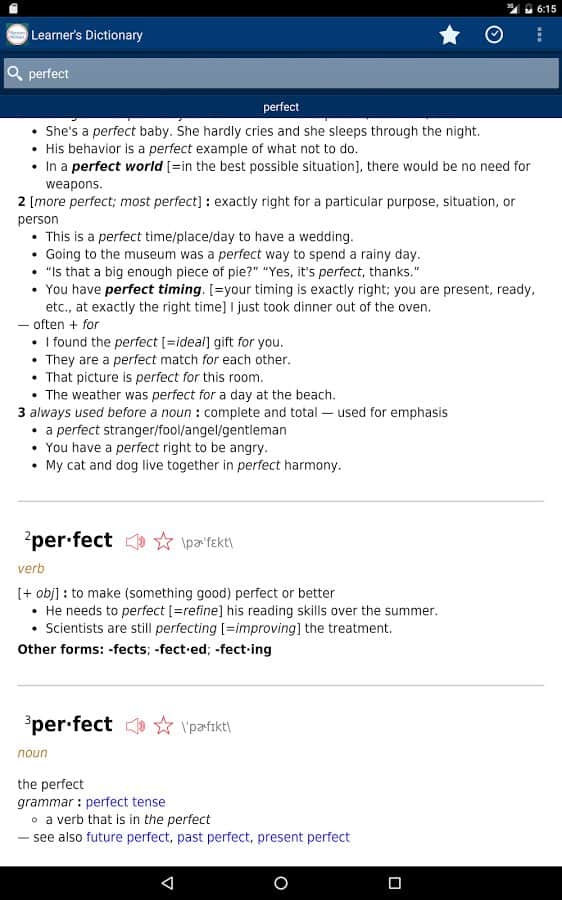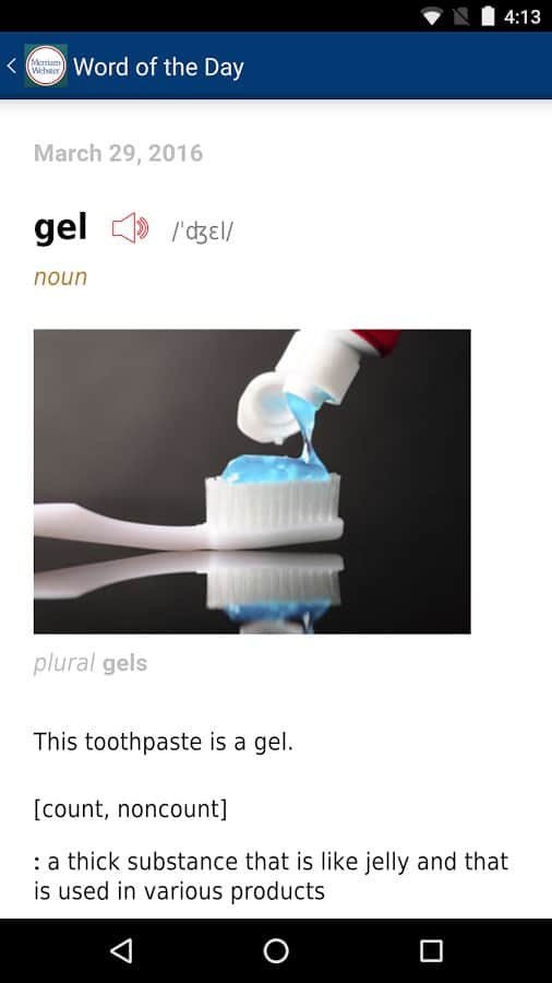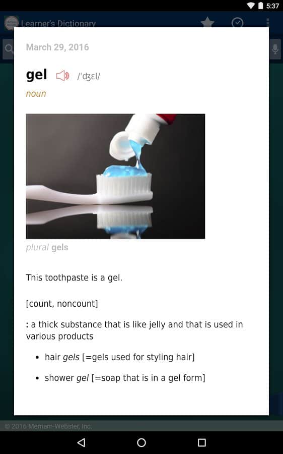 Learner's Dictionary - English - Умный словарь для тех кто уже владеет английским языком. Если вы новичок и практически не знаете английский язык, это приложение вам не подойдет, ведь всё оно на английском языке. Вбив нужное вам слово в поиск, вы сможете посмотреть как оно пишется, а так же послушать как звучит. Приложение довольно простое но очень забавное, и поможет многим людям улучшить владение английским языком, пополнив их словарный запас.