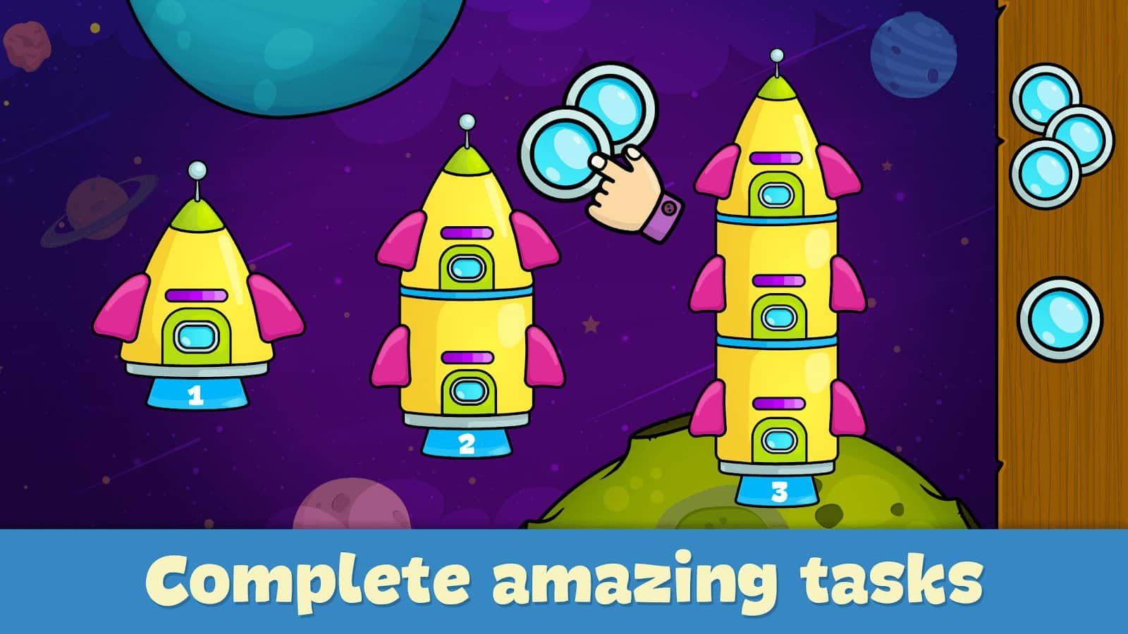 Learning games for toddlers age 3 – развивающая игра для детей дошкольного возраста которая содержит 56 разных игр. Эта игра поможет вашему ребенку развивать мелкую моторику, навыки координации, логическое мышление и визуальное восприятие. Эта игра была создана при поддержке экспертов в области домашнего образования и отлично подойдет для малышей от 1 года. В этой игре ваш ребенок научиться распознавать разницу между размерами, сортировать фигуры по формам, изучать цифры, развивать память и определять цвета.