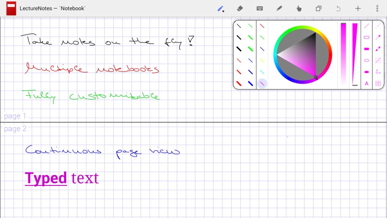 LectureNotes - Занятное приложение для тех кто любит учится, и записывать все свои мысли. Это по сути блокнот, но с очень расширенными функциями, здесь можно пользоваться рукописным вводом, что очень важно при записи лекции или создании своих макетов. Вы сможете загрузить картинку, вырезать её часть и в ручную нарисовать к ней пояснения, а так же множество других функций, делают это приложение очень гибким и универсальным в своем роде.