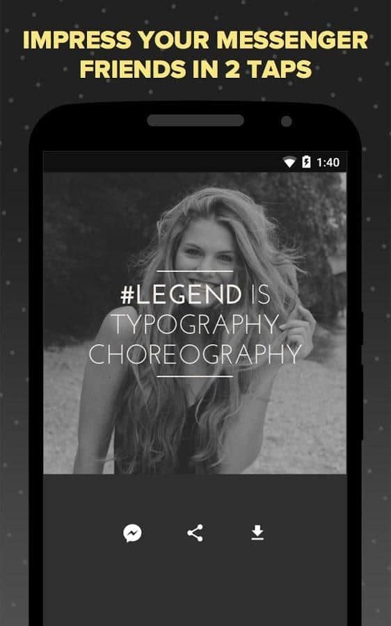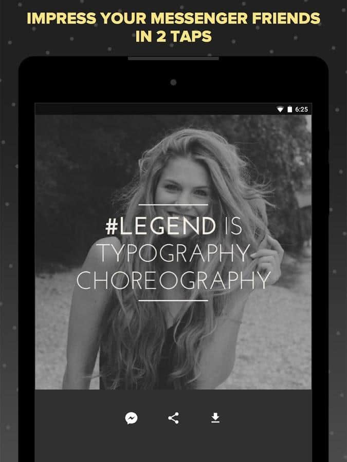 Legend - Animate Text in Video – Добавьте разнообразия своим сообщениям, сделав их более уникальными. Данное приложение изменит ваш взгляд на сообщения, больше не нужно писать обычный текст, лучше установите его, и отправляйте своим друзьям анимированные сообщения. Всё очень просто, вы пишите текст, потом выбираете для него анимацию, потом подбираете каким будет фон, будь то фотография или же видео. И в конце устанавливаете цвет для своего текста, что бы он четко отображался на экране. А потом смело отправляете всё это своим друзьям, все очень просто и смотрится красиво и красочно.