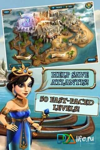 Legends of Atlantis: Exodus - Приключенческая стратегия на андроид про спасение Атлантиды. Легендарная Атлантида тонет. Массивные приливы и большие волны подмывают остров. Вам предстоит взять королевство в свои руки и спасти Атлантиду от затопления. Вас ждет более пятидесяти привлекательных уровней, полные бонусов и мини игр. В игре хорошая анимационная графика с красиво нарисованными местностями в уровнях. Мини игры сделаны в жанре три в ряд, что придает стратегии дополнительной привлекательности.
