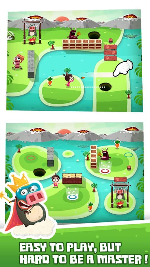 Let Pig Go – веселая головоломка на андроид, где вы будете помогать девочке Лили освободить поросенка от злых монстров. В этой игре вы перенесетесь в мир полный опасностей, ловушек и злых монстров. Помогите маленькой девочке Лили главной героине игры заманить всех монстров в ловушку и спасти поросенка из плена. Впереди вас ждут многочисленные и разнообразные уровни, каждый из которых порадует вас разнообразными преградами и ловушками. Обходите все преграды на пути и заманивайте монстров и кроличьи норы и озера и поджаривайте на костре. По пути не забывайте собирать морковки и открывать новые уровни.
