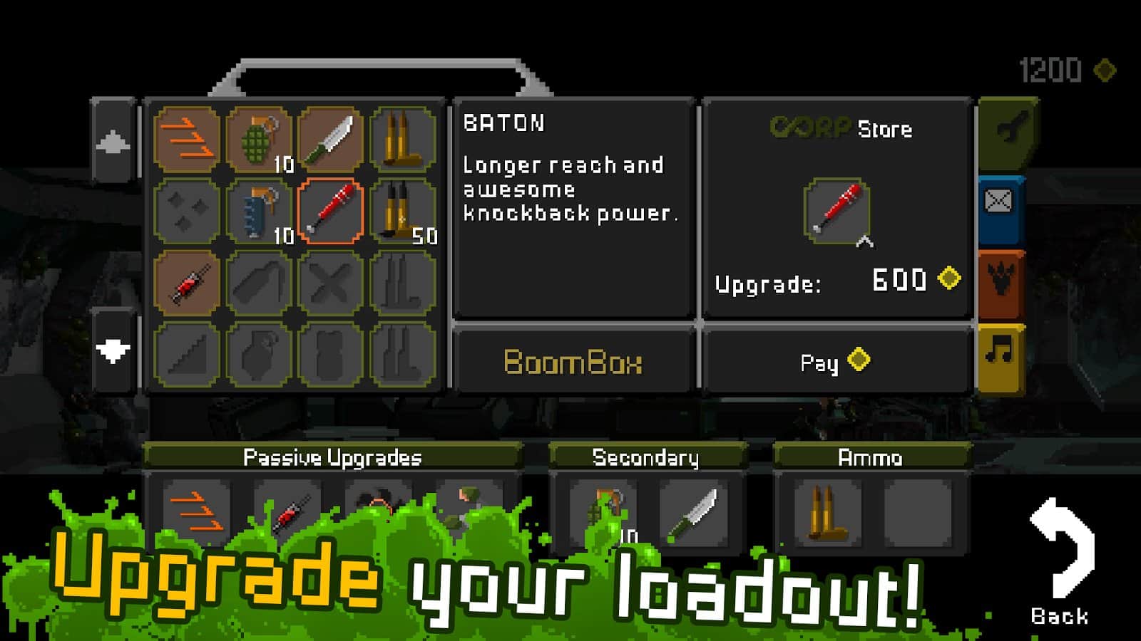 Геймплей тут такой себе, тупо жать на кнопку стрельбы. Дрочильня одним словом. Особенно когда её пройдёшь игра позволяет себя перепроходить, ничего не меняя, наверное только сложность, но я не замечал изменения в сложности. Из не тупого тут только то, что брать с собой в битву самые последние (и дорогие) гранаты, пули, улучшения и т.д. не самый лучший выбор. Ещё вдумчивый выбор усилений при заполнении полоски ярости позволяет бесплатно пополнять сняряжение и эффективно продвигаться вперёд за счёт выбора бустеров валюты. Но такие выборы лишают тебя красочных взрывов или двойного дула например