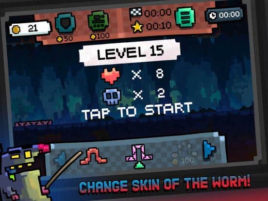 Let's Worm – увлекательная игра для IOS, где вы будете управлять червяком и проходить сложные уровни. Уровни этой игры одновременно казуальные и хардкорные которыми сложно овладеть в совершенстве. Возьмите под свой контроль червяка и проживите один день из его жизни полный опасности и препятствий. На своем пути вы встретите множество опасностей, таких как острые шипы, качающиеся маятники, падающие сверху объекты и кроты. Обходите их всех и старайтесь добраться до заветной цели как можно быстрее и установить свой рекорд в игре. Пройдите все 30 уровней и добейтесь невероятных результатов.