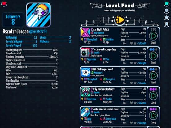 Levelhead - Вы новый сотрудник корпорации по срочной доставке посылок по всей галактике. Ваш подопечный робот-доставщик GR-18, которого вам необходимо обучать и улучшать его навыки быстрой доставки. Почувствуйте себя разработчиком игр, создавая различные УРОВни, то есть «Упражнения по Развитию Ограниченных Возможностей сотрудников». Уровни, созданные вами, можете проходить не только вы, а игроки со всего мира. Самые лучшие уровни попадут в ТОП и у вас даже будет свой фан-клуб.