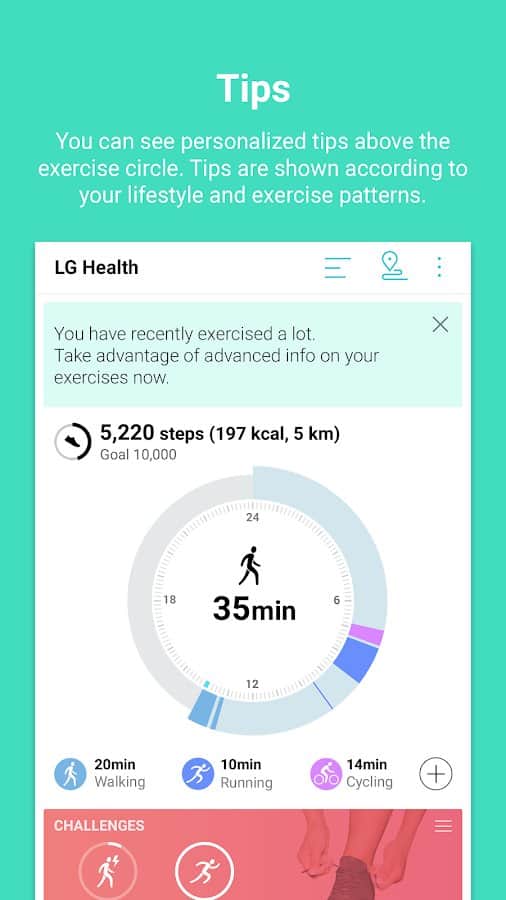 Настраиваемая под каждого человека программа LG Health позволяет отслеживать по всем параметрам уровень ежедневной активности и вести статистику.