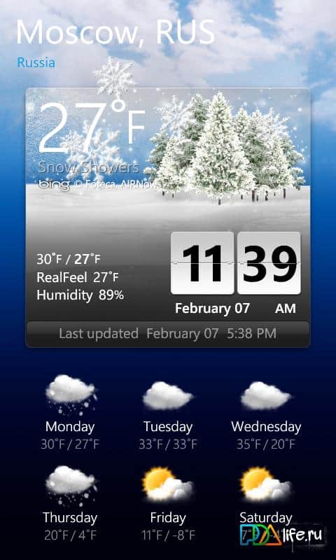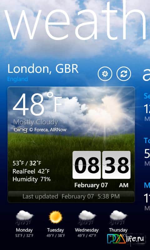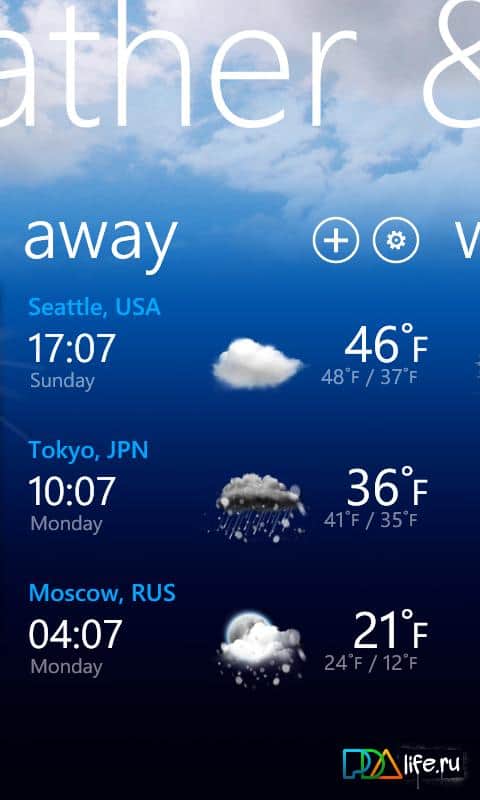 LG Weather & Clock - показывает на экране вашего windows phone информацию о погоде и время, используя панорамные изображения. Своё место положение можно отметить в ручную или программа может сделать это автоматически, от одного до нескольких мест. Данные прогноза погоды используются из сервиса Bing.