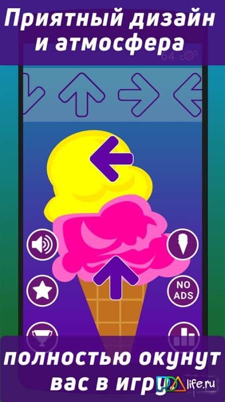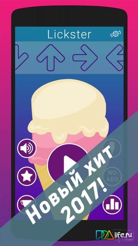 Lickster Ice – игра на андроид, с минималистичной графикой где вы будете лизать мороженное. В этой игре вашей главной задачей будет слизать свое мороженное как можно быстрее и установить свой рекорд в игре. Геймплей игры заключается в том что по мороженному будут двигаться стрелки, имеющие разное направление и вашей задачей будет ловить их и набирать тем самым очки. Двигайте по экрану шаблон для стрелок и ловите передвигающиеся стрелки. Играйте в эту игру и набирайте достаточное количество очков, чтобы бросить вызов лучшим игрокам и подняться на самый верх таблицы лидеров. Наслаждайтесь приятной графикой и простым управлением.