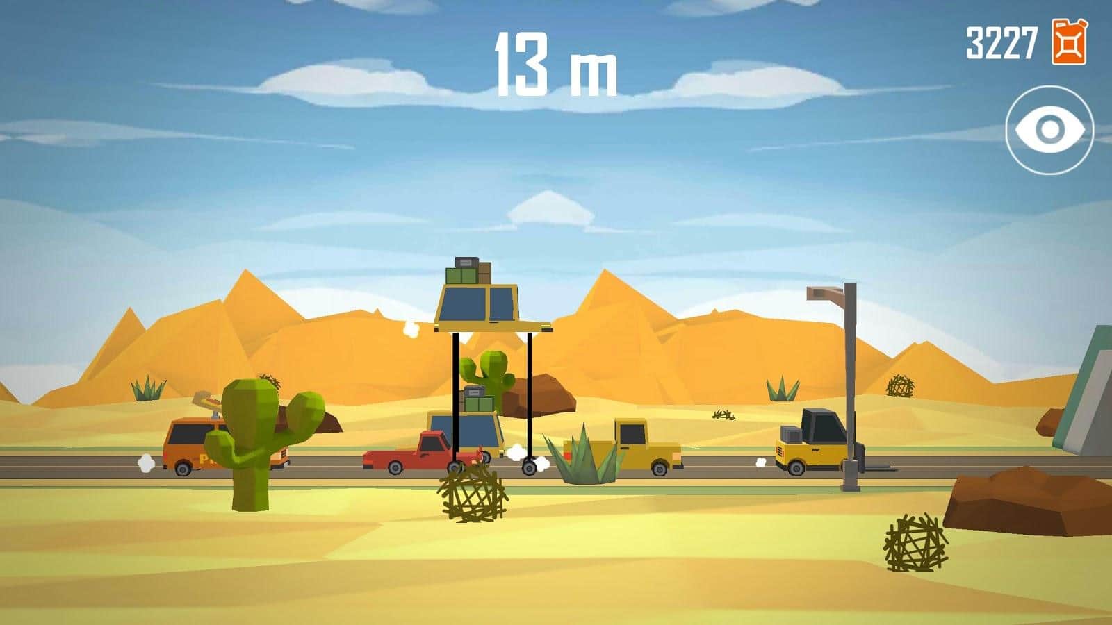 LIFT CAR : Pumping Smashy race - раннер на андроид, где вы возьмете под свой контроль небольшой автомобиль и проведете его по различным трассам. Ваш автомобиль уникальный в своем роде он может поднимать себя на небольшое расстояние и таким образом преодолевать препятствия. Нажимайте на экран своего девайса один раз и поднимайте свой автомобиль для того чтобы проехать над небольшой машиной, нажимайте два раза и поднимайте его еще выше и так до трех положений машины. Дорога по которой вы будете ехать полна различных препятствий и мостов, преодолевайте их все и дойдите до финиша без происшествий. Также не забывайте собирать по пути канистры с бензином, которые не будут лишними. Будьте предельно внимательны и осторожны три ошибки и игра закончиться.