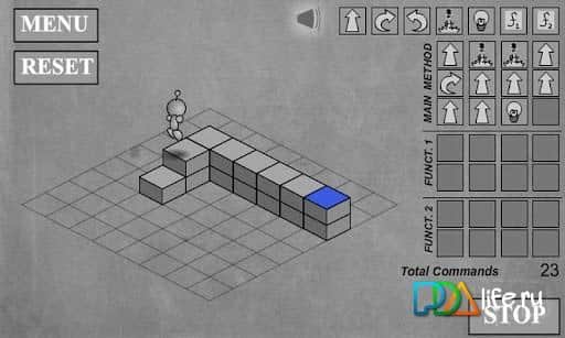 Вот уж головоломка из головоломок Light Robot. Сюжет таков - на заводе роботов погас свет. Надо его зажечь. Но вот незадача - есть только один действующий робот, ад еще и не оконченный, без необходимой прошивки. Ну что ж, придется вам побыть программистом, чтобы составить маршрут движения робота из указанной точки к синему квадратику и зажечь лампочку. Кажется все просто, но это только на первых уровнях. Дальше, как обычно, сложнее. Да настолько, что придется изрядно пошевелить мозгами. Однако это никак не напрягает, а наоборот, добавляет азарта!