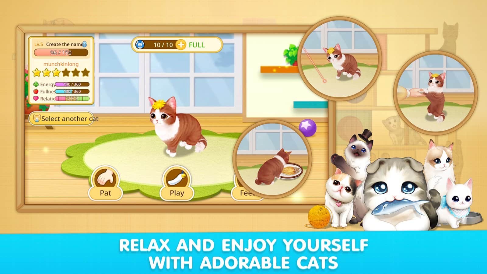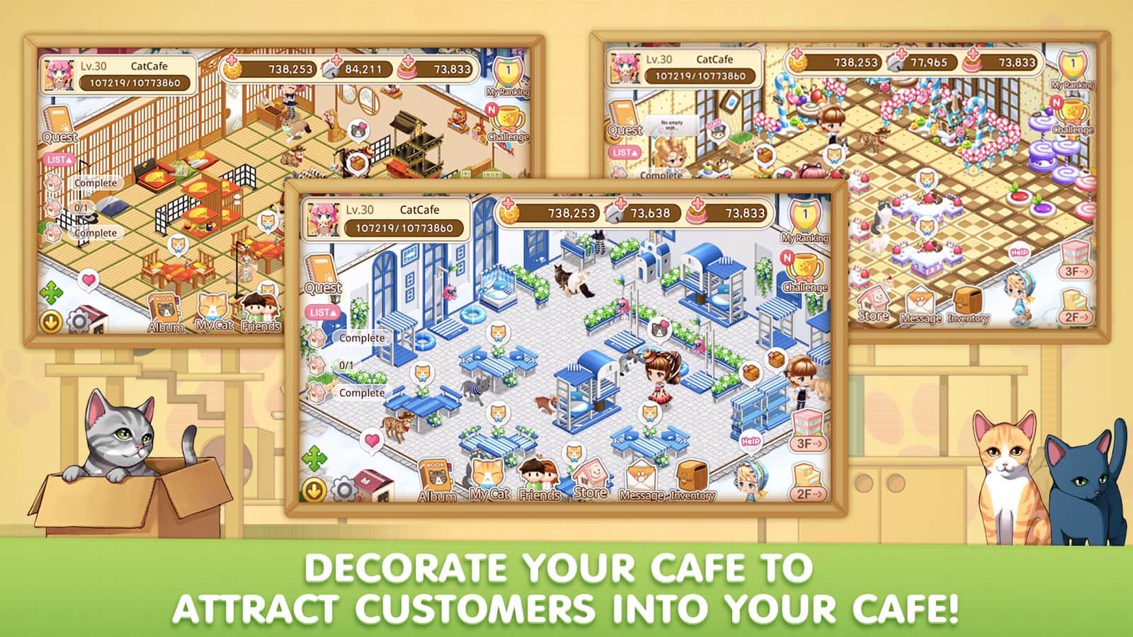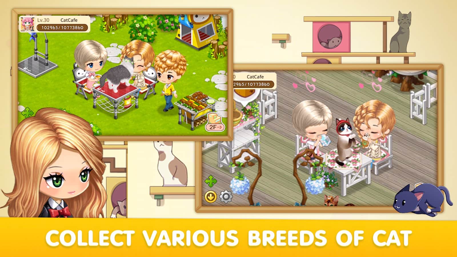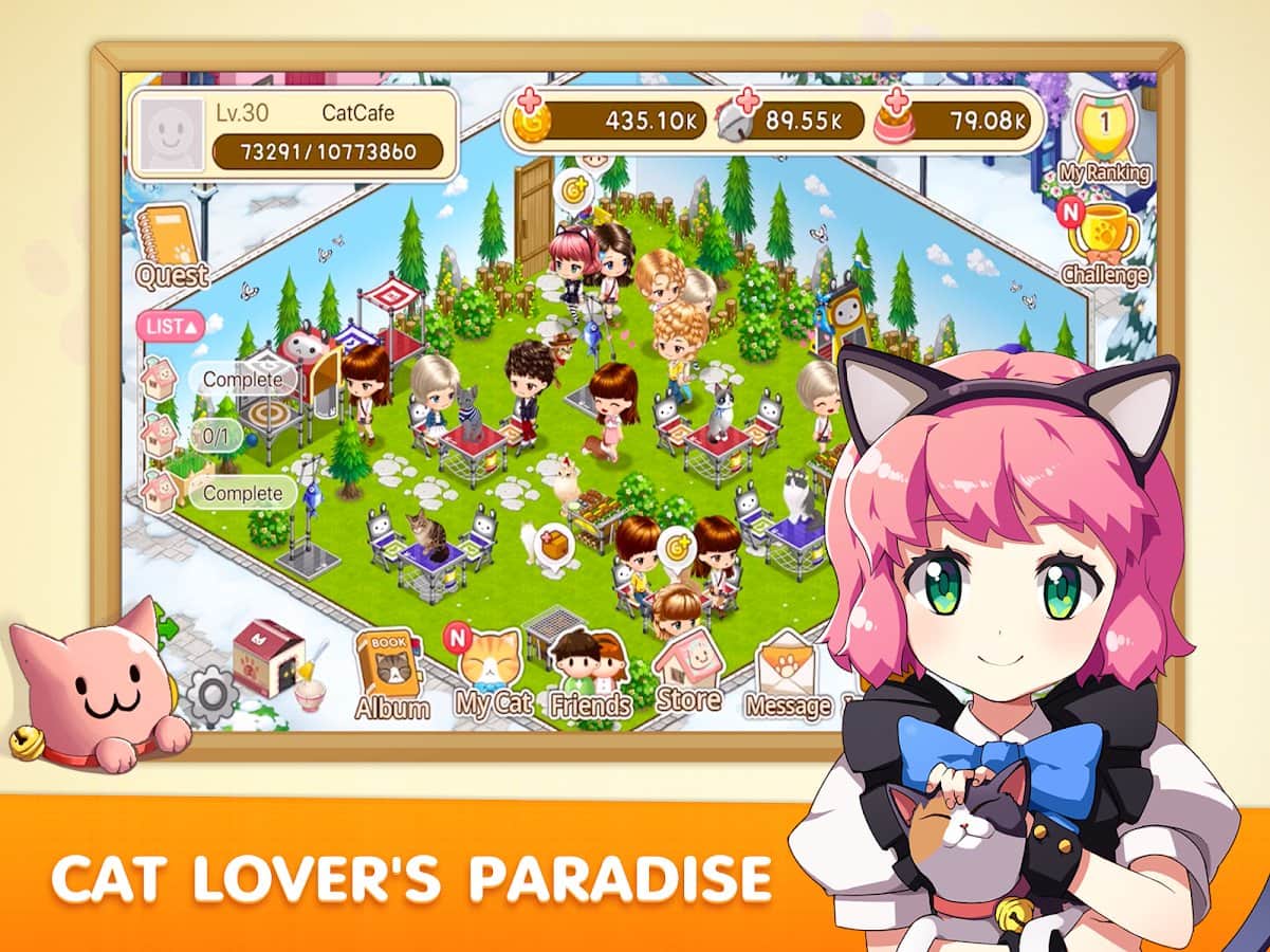 LINE Cat Café – увлекательная игра на андроид, где вы будете управлять небольшим кафе с милыми домашними животными. Возьмите под свой контроль кафе которое вы должны обустроить, придумать фирменное меню и поселить в нем множество домашних кошек. Открывайте для себя новые породы кошек и оставляйте их жить в своем кафе. Занимайтесь разведением кошек и радуйте своих посетителей. Подыскивайте хозяев для своих кошек и ищите для них новый дом. Также не забывайте заниматься своим кафе и делать его самым популярным местом в городе. Всего в игре вы найдете более 400 необычных пород кошек, которые будут радовать вас своим неповторимым видом.