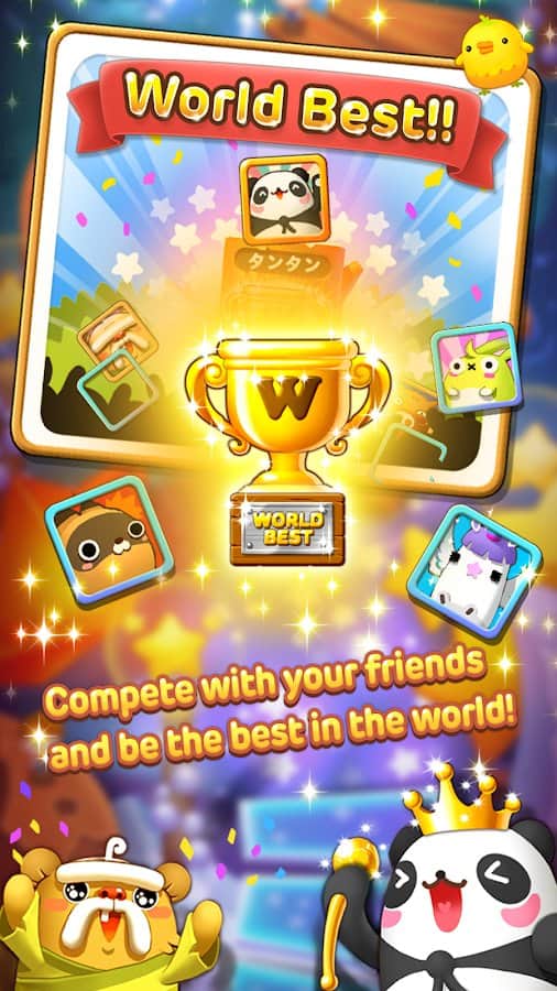 LINE Puzzle TanTan – занимательная игра на андроид, где вы будете выступать в роли, панды которой необходимо очистить игровое поле от блоков. Соединяйте одинаковые блоки между собой и убирайте их с поля. Проделывайте комбо и получайте в два раза больше очков. В этой игре вы будете помогать панде вернуть для жителей деревни всю еду, украденную злоумышленниками. Начните свое занимательное приключение прямо сейчас и наслаждайтесь разнообразными заданиями. В этой игре вы сможете сражаться с другими игроками за лучшие результаты убирая как можно быстрее с игрового поля все блоки. Приобретайте в магазине полезные вещи и улучшения, которые позволят вам быстрее проходить уровни.