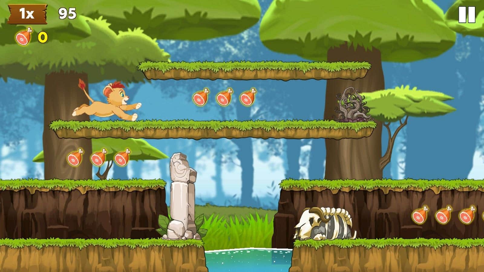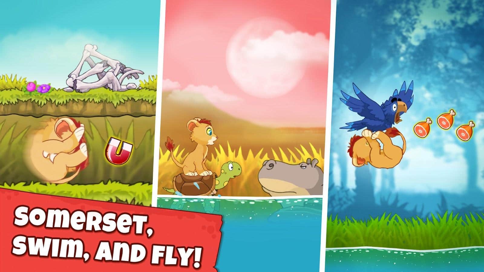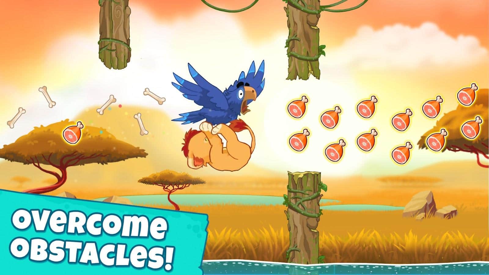 Lion's Journey - Бегите из зо всех сил и старайтесь не попасться злому духу Африки. Управление в игре самое что ни наесть простое, тап по экарну- это прыжок, свайп вниз - опуститься на уровень ниже. В опасном приключении тебя будут встречаться твои верные друзья и помощники: бегемот, черепаха, страус, попугай. В игре яркая графика и плавная анимация.