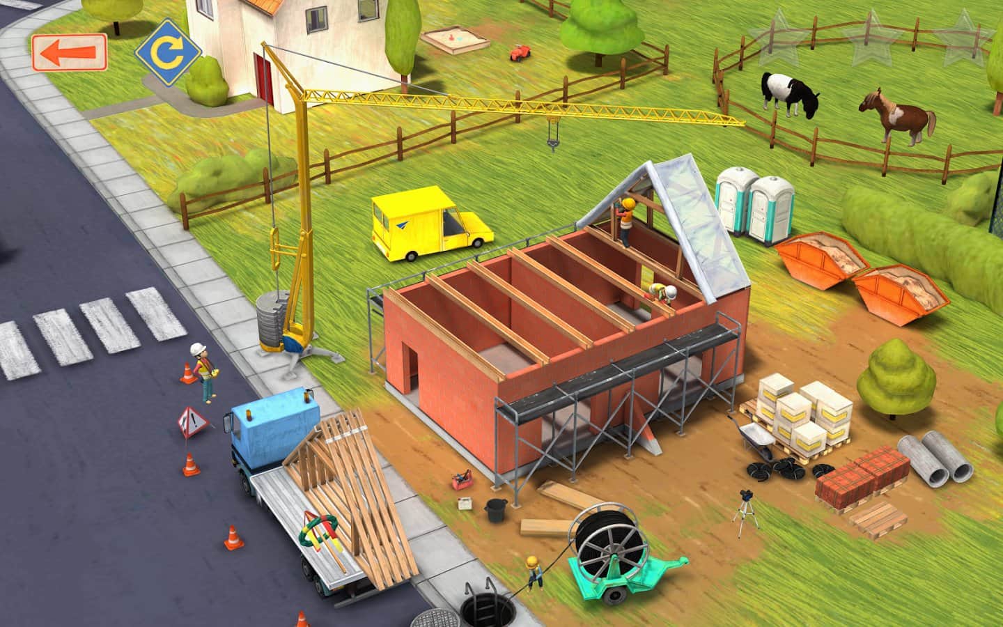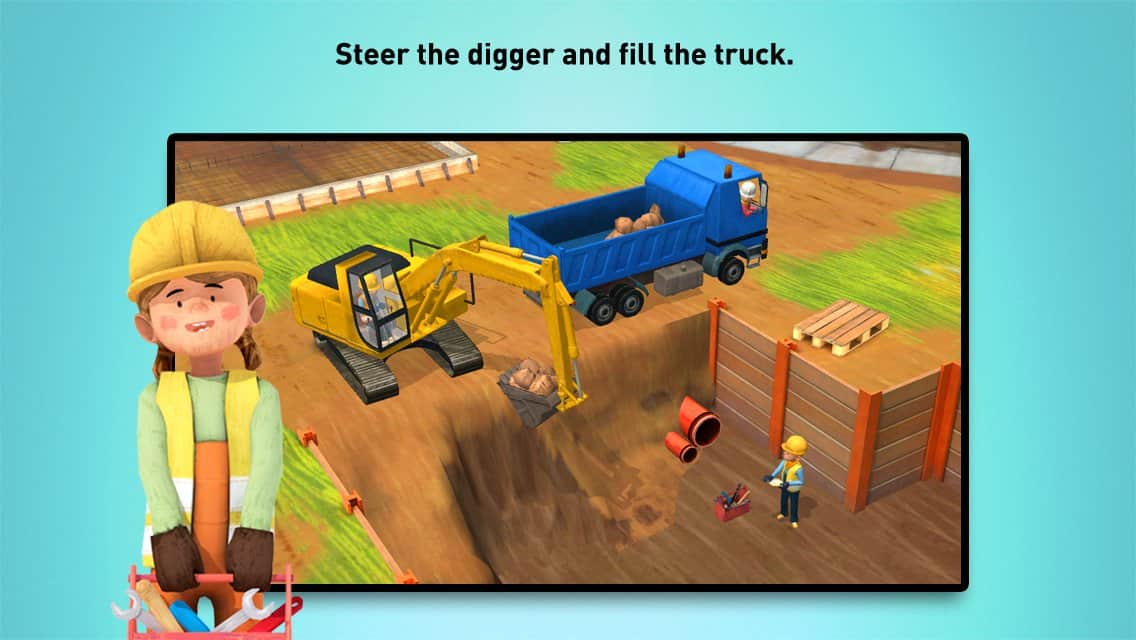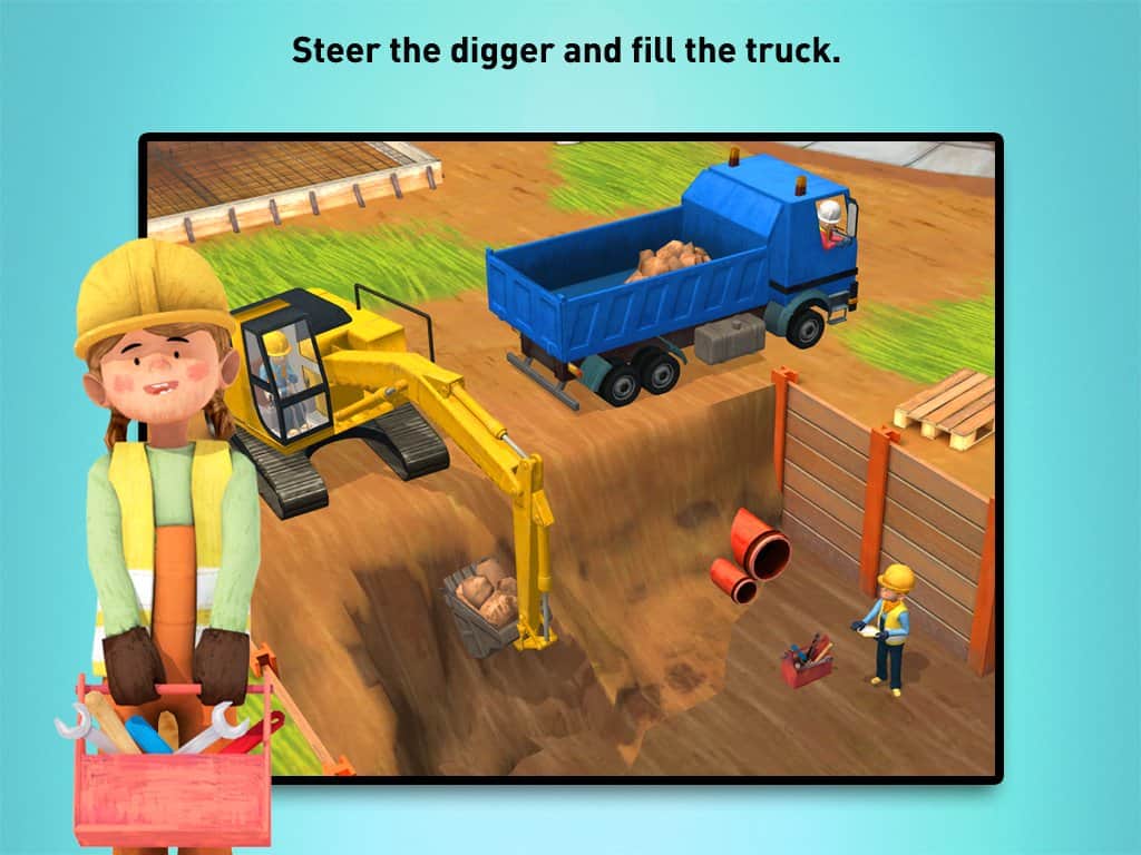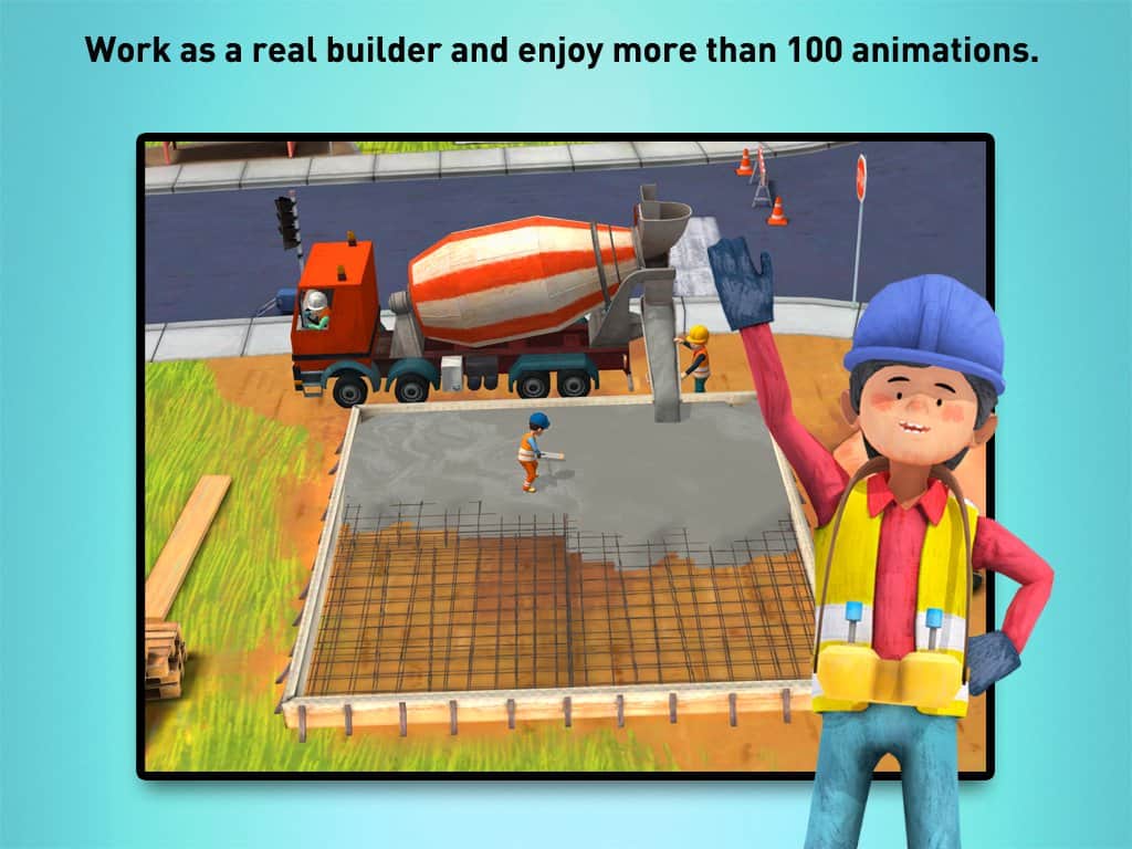 Little Builders – веселая игра для самых маленьких с помощью которой они отправятся на строительную площадку. В этой игре ваш ребенок сможет управлять экскаватором, раскрашивать дом в разные цвета, устанавливать крышу на дом с помощью крана, замесить цемент, управлять уборочной машиной и многое другое. Помогите маленьким строителям в их большой стройте и наблюдайте за их забавными происшествиями, которые будут происходить во время работы, водопровод прорывает, строитель падает в яму, кирпичи падающие вниз еще не скрепленные раствором и много другое. В игре предусмотрено 7 интерактивных сценариев, которые содержат более 100 анимированных сцен и необычных сюрпризов от маленьких героев.