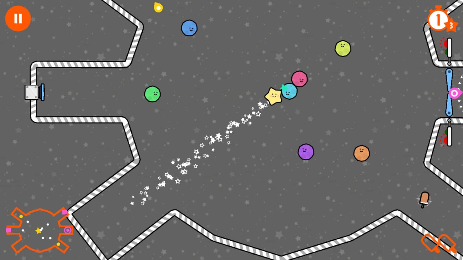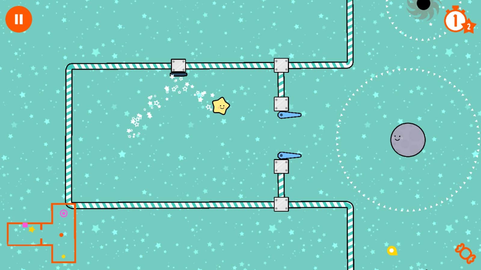Little Comet – отличный мини гольф на андроид, основанный на законах физики. В этой игре вы будете управлять маленькой кометой, которая путешествует по огромной солнечной системе и старается достигнуть солнца. На своем пути вы повстречаете множество различных планет, различных друзей и соберете как можно больше конфет. Летайте по космосу и используйте гравитационное поле различных планет чтобы двигается дальше. Выполняйте различные миссии и задачи игры и не забывайте собирать звезды, которые позволят вам открыть больше уровней. Играйте в эту игру и наслаждайтесь захватывающим игровым процессом.