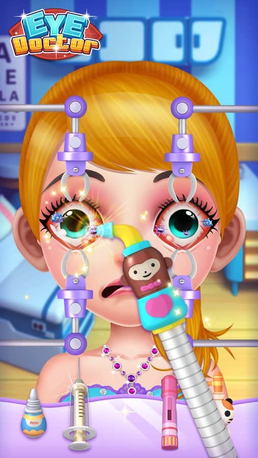 Little Eye Doctor – игра для детей на андроид, где они смогут побывать в роли врача окулиста. В этой игре вы окажитесь в кабинете, где будете вести прием для детей с различными расстройствами зрения и чувствительными глазами. Принимайте юных пациентов и с помощью различных инструментов и приборов помогите им очистить глаза от мусора и пыли. Закапывайте в глаза специальные капли и после всех процедур проверяйте зрение. Если пациент видит расплывчато буквы, то подбирайте и прописывайте ему очки. Проводите медицинский осмотр всех посетителей и помогите им вылечить глаза и улучшить зрение.