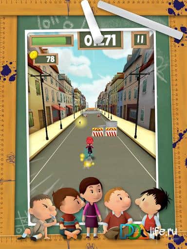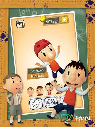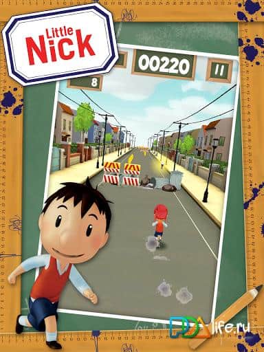 Прикольный раннер. На моём телефоне не устанавливается, но благодаря моему Самсунгу Гэлэкси С4 мини я смог насладиться этим чудом. Игра сильно похожа на Temple Run. Николя разбил мячом окно, а за ним гонится директор - весь сюжет который подаётся в короткой заставке в начале. Управляем Николя мы наклоном телефона, но если он уедет за границы экрана то мы проиграем. Есть полоска стамины, которая пополняется при сборе мороженого, если она опустеет то мы проиграем. На дороге нам встретятся заборы, мусор, машины, ямы, трубы и школьник на ведосипеде. Для преодоления препятствий Николя может проскальзывать под ними или перепрыгивать их. При столкновении с препятствием мы не проиграем, а просто упрёмся в него и сможем перепрыгнуть. Чем дальше мы проведем тем быстрее будет ехать Николя. Проезжая дальше будет меняться окружение на частные дома, многоквартирные дома и какой-то пустырь либо парк. На дороге кроме преград и мороженого разбросаны монеты. За них можно приобрести одноразовые бусты, улучшить подбираемые павер-апы, купить персонажей, костюмы для них и велосипеды. Покупка персонажей костюмов и транспорта не дают никаких бонусов. В игре есть задания по типу "проедь 1000 метров", "собери 10 мороженных", "собери 500 монет", и ещё есть еженедельное задание за которое дают одноразовые бусты. Графика в игре красивая, прям как в мультфильме, вот только у директора будто варежка вместо кисти. В игре можно купить монеты за реальные деньги. И ещё есть донатный велик который даёт бонус x2 к собираемым монетам. Я бы сказал что эта игра на уровне раннера про губку боба, отличаются они только управлением. В будущем, если куплю где-то новую батарею к Note II, буду тестить на нём такие, никому не нужные, игры.