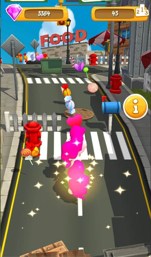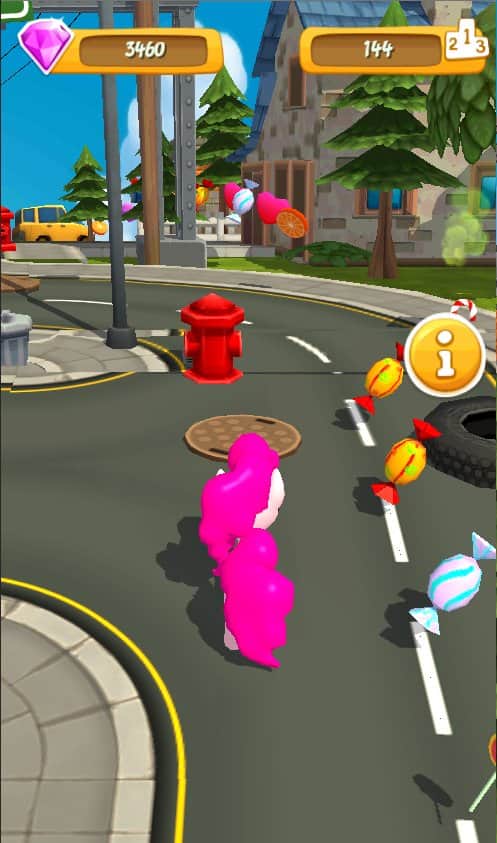 Little Pony City Adventures – игра для девочек где они возьмут под свой контроль милого пони и проведут его по оживленным улицам. Ведите своего пони вперед по улицам города, заполненным многочисленными преградами и препятствиями. Помогите персонажу исследовать город и открывать для себя, что то новое и интересное. Внимательно следите за тем, куда двигается пони, маневрируя в потоке бесконечного транспорта, перепрыгивая через барьеры и собирая по пути конфеты и волшебные кристаллы. Соберите достаточное количество бонусов и откройте новых пони, которые порадуют вас уникальным внешним видом.