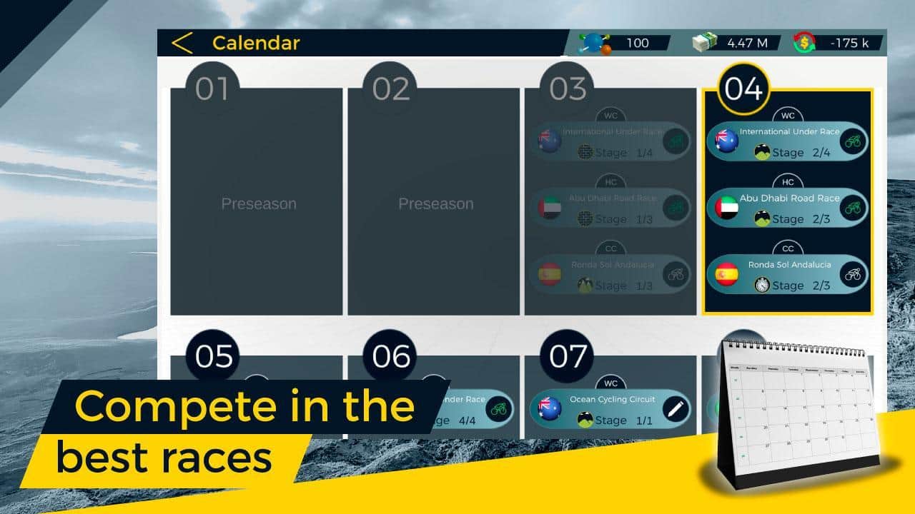 Live Cycling Manager 2 – интересная игра на андроид, где вы будете выступать в роли спортивного менеджера велосипедной команды. Выбирайте и создавайте клуб своей мечты и управляйте им. Станьте директором команды и соревнуйтесь с еще 40 командами для того чтобы достичь отличных результатов. Возьмите под свой контроль все аспекты клуба и занимайтесь тренировками, трансфером, персоналом, выбором бегунов и финансовыми вопросами. Находите и приглашайте в свою команду лучших велосипедистов, тренеров, психологов, врачей и механиков. Преодолевайте все трудности и невзгоды на протяжении всего сезона и идите к победе. Получите незабываемый опыт участия в гонках в реальном времени и управляйте своими велосипедистами.