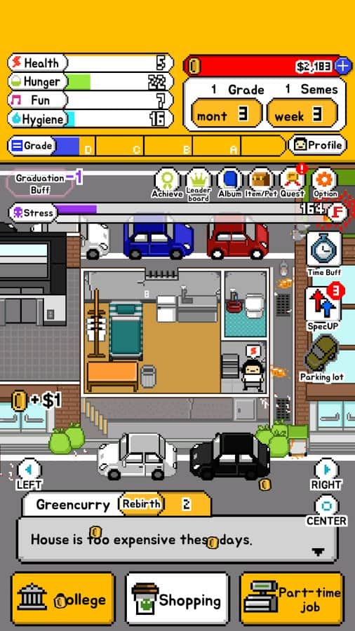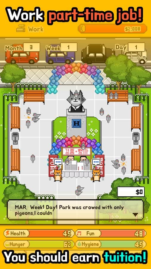 Living Alone – игра на андроид, где вы будете помогать недавнему выпускнику колледжа выживать в огромном городе. В этой игре вы будете играть роль персонажа, которому необходимо обустроиться на новом месте, найти работу, оплачивать жилье и пропитание. Ведите неторопливую жизнь и помогайте персонажу выживать в городе. Постоянно следите за здоровьем и самочувствием своего героя, а также поднимайте ему настроение, заводя милых домашних питомцев. Зарабатывайте деньги и меняйте внешний вид персонажа. Игра порадует вас приятной пиксельной графикой, простым и понятным управлением, а также увлекательными заданиями и различными концовками.