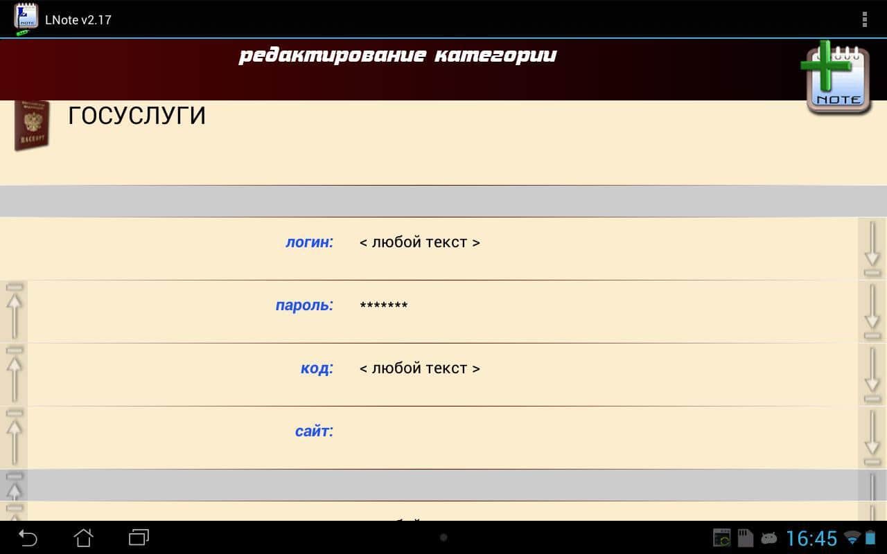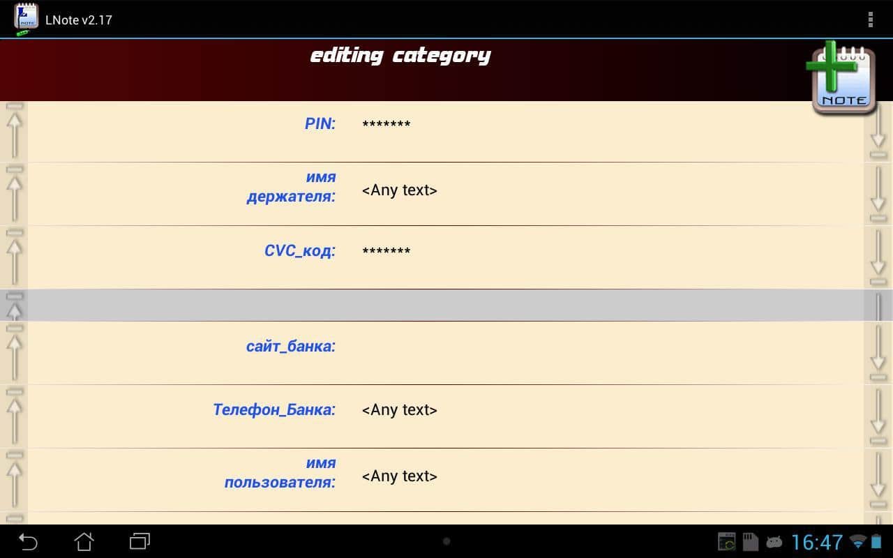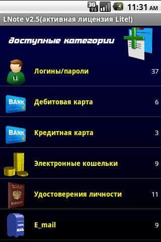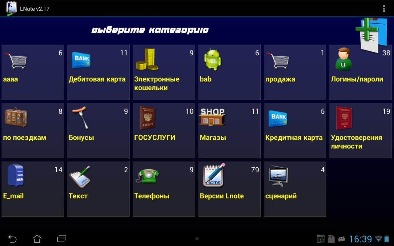 Lnote для андроид. Мощный органайзер, позволяющий сохранять и структурировать любые данные в зашифрованном виде. Программа не требует доступа к сети интернет, но может синхронизироваться с Google Drive, DropBox и т.п. Стоит отметь, что если вы забудете или потеряете пароль доступа к Файлу, то восстановление данных не возможно. Lnote содержит большое количество возможностей и функций, которые будут полезны вам в работе.