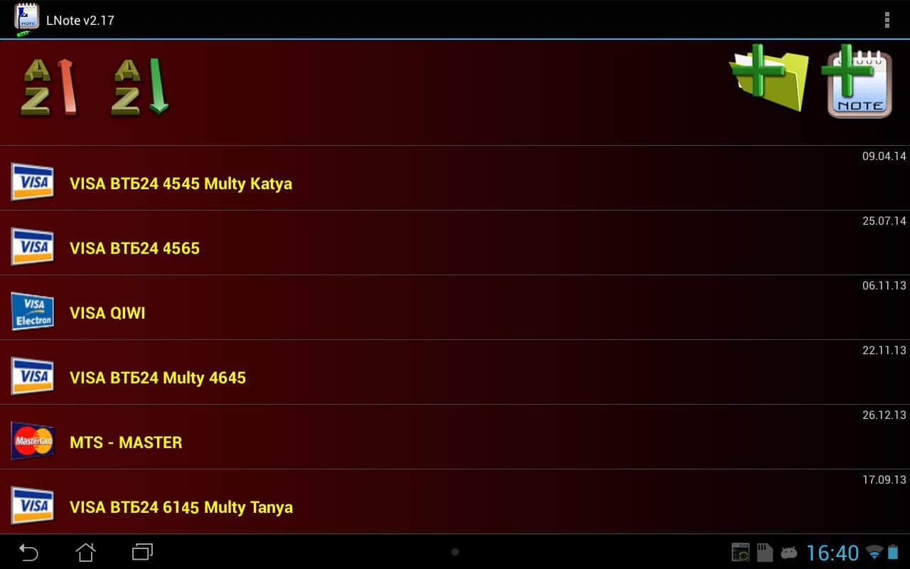- Записи в категории можно распределять по частоте использования, по порядку их занесения или сортировать по a->z/z->a порядку.