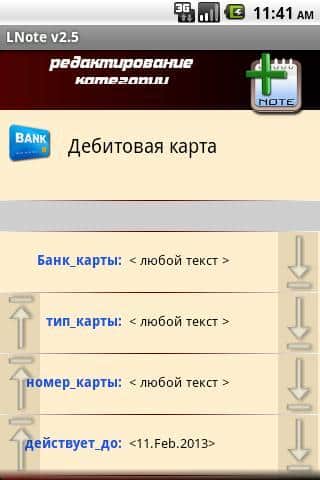 - Ввод/редактирование вносимых данных в шаблоны доступных категорий. Есть возможность переноса записи из одной категории в другую.