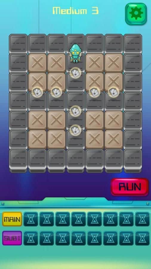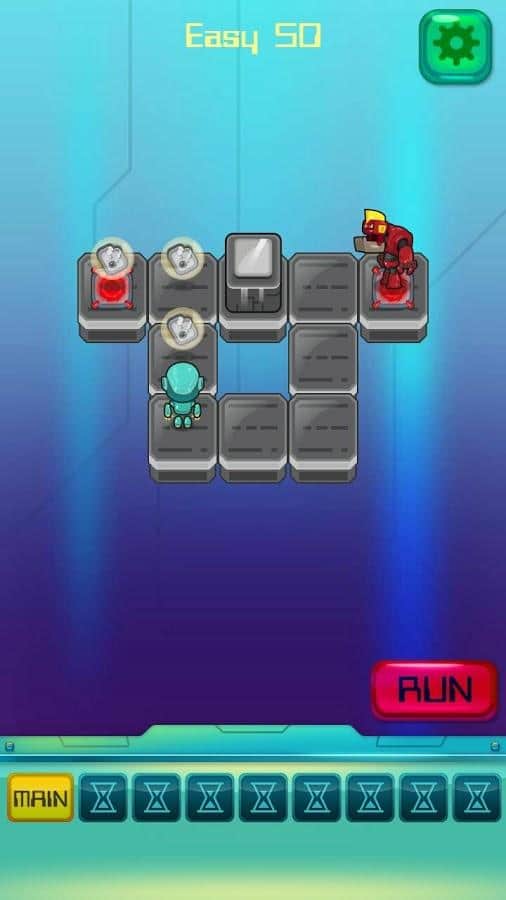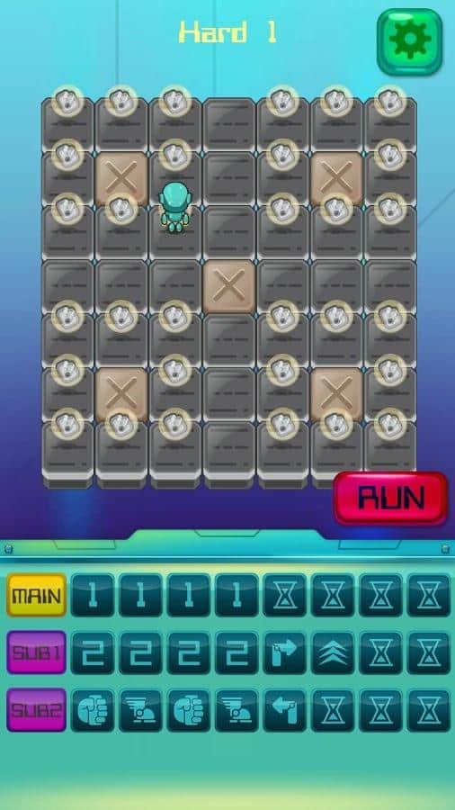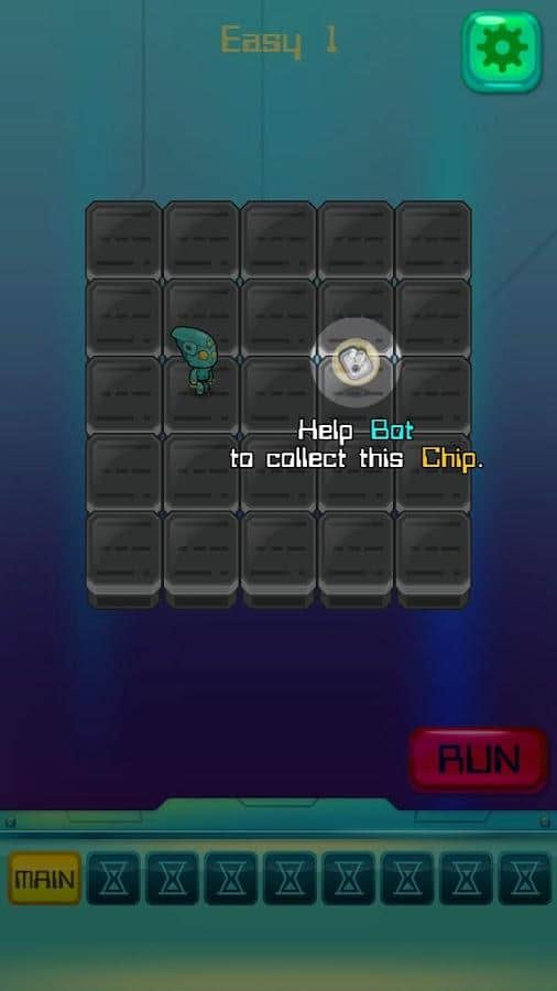 Геймплей прост: составляем линейную систему команд для робота, чтобы он прошёл маршрут и подобрал все чипы.
