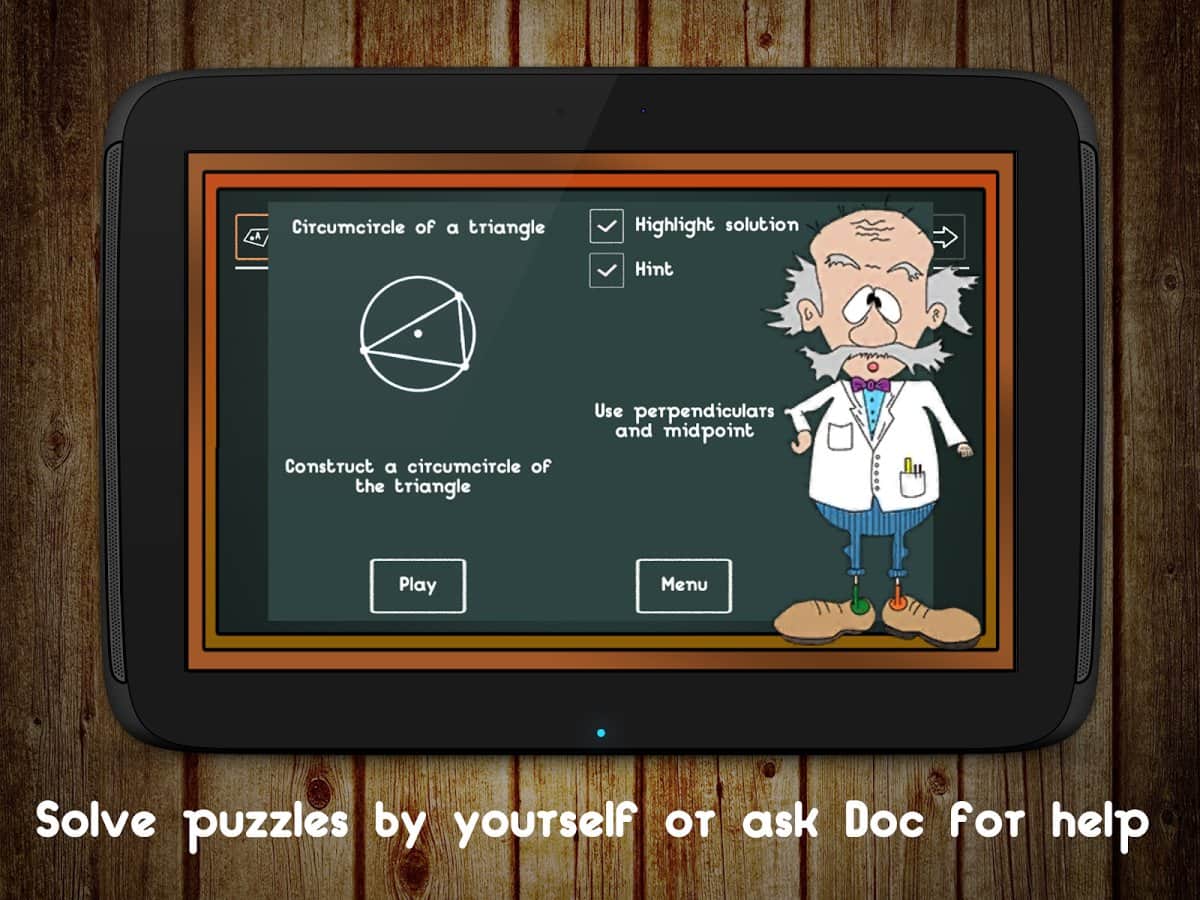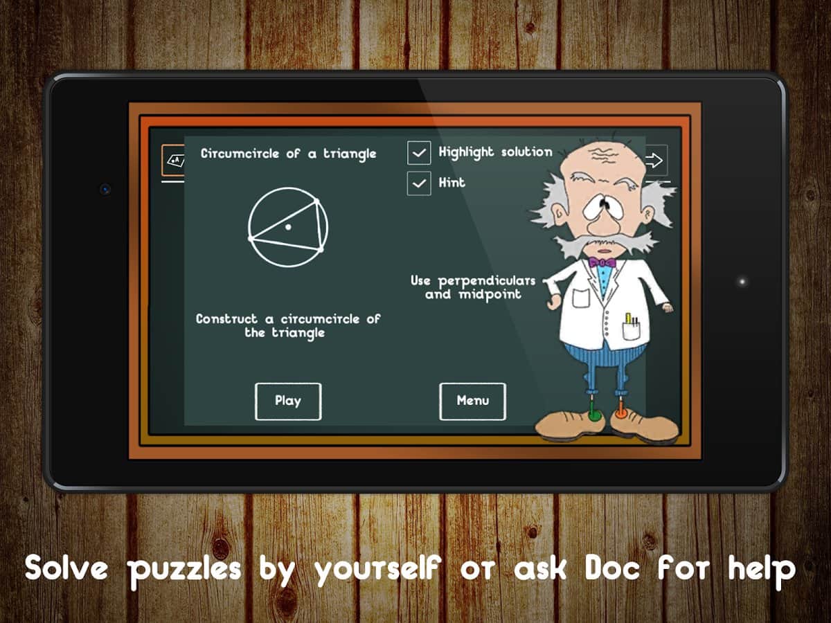 Логические головоломки - если вы любите головоломки, а однотипные пазлы уже наскучили, тогда представляем вашему вниманию игру, в которой вам придётся решать геометрические головоломки. На каждом уровне вам будет даваться определённая геометрическая фигура, на основе которой, необходимо с помощью предоставленного циркуля и линейки начертить новую фигуру