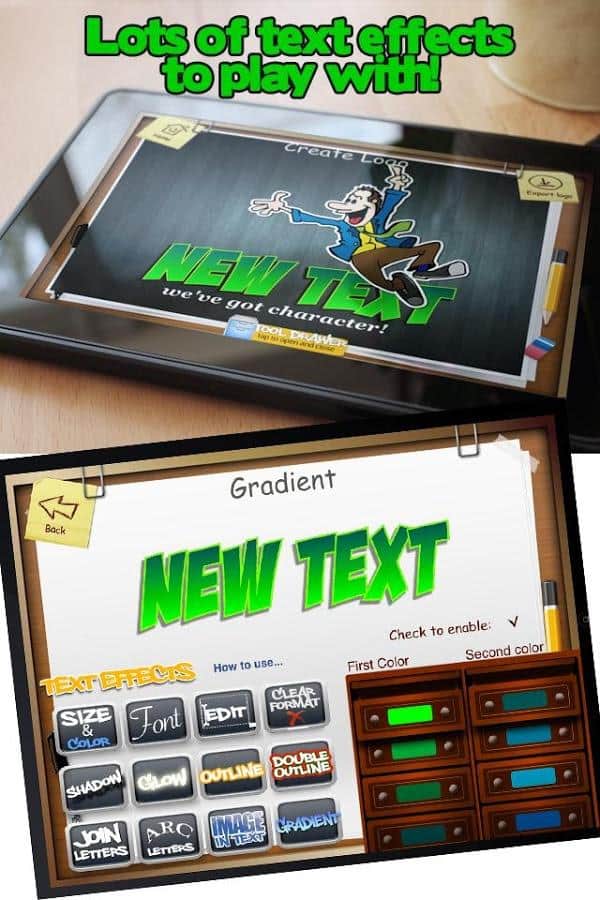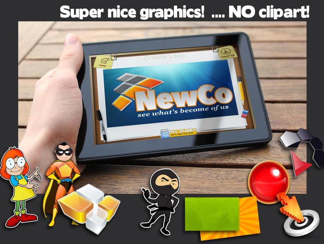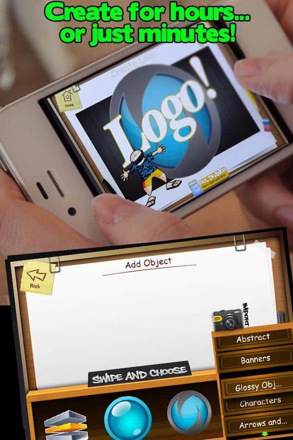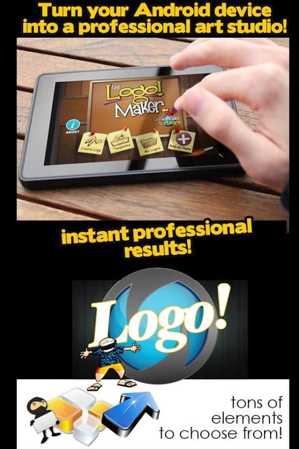 Logo Maker – хорошее приложение для создания собственных логотипов, графиков и рисунков на своем андроид устройстве. Разработчик Laughingbird Software предоставляет большое количество шрифтов, иконок, всевозможных персонажей и более 30 шаблонов. Одним словом все необходимое для творческого полета при создании собственного проекта.
