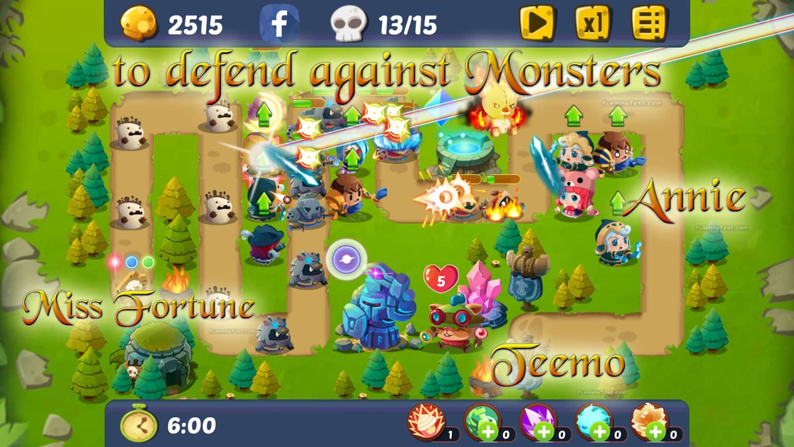 LoL Defender – стратегия из жанра Tower Defense на андроид, где вам предстоит защитить свои земли от врагов. Ваши враги вторглись на вашу территорию, и теперь вам предстоит дать им отпор с помощью защитных башен и мощных героев с разными способностями. В этой игре вашей задачей будет правильно расставить бойцов в борьбе против монстров и не дать пройти ми дальше. Проходите уровни и выбирайте новых героев наделяя их оружием и новыми способностями. Эта игра откроет для вас совершенно новый опыт игры такого жанра, и порадует вас красивой графикой в стиле аниме.