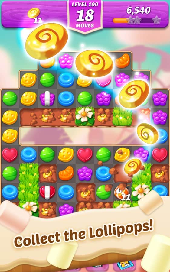 Lollipop & Marshmallow Match3 – откройте для себя увлекательный мир этой игры на андроид, где вы будете помогать главной героине, вернуть леденцы. Зефирные браться похитили у Дженни вкусные леденцы и теперь чтобы их вернуть необходимо проделать долгий путь составляя из конфет ряды. Сортируйте между собой разноцветные конфеты и проходите сложные уровни. Составляйте как можно длиннее ряды и получайте отличные бонусы и усиления. Каждый новый уровень предложит вам уникальное задание, проходя которое вы будете получать леденцы. Тщательно продумывайте каждый свой ход и пройдите более 200 уровней.