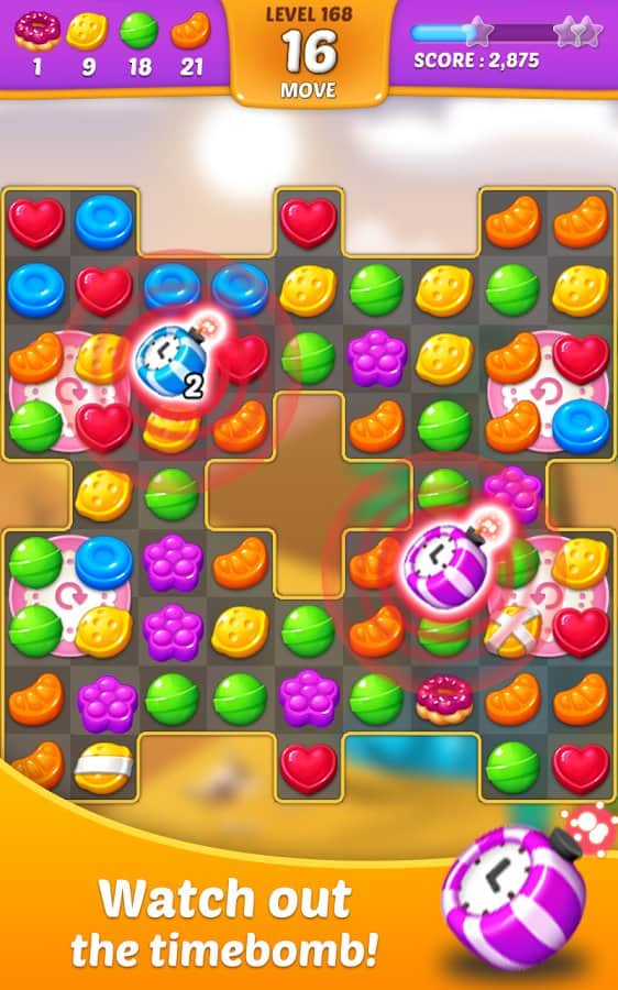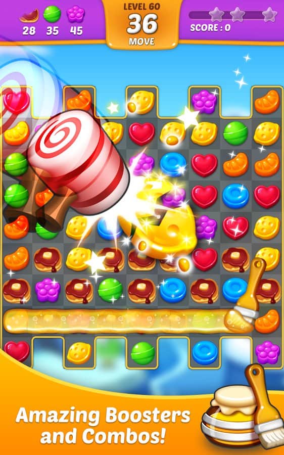 Lollipop: Sweet Taste Match3 – игра из жанра три в ряд на андроид, где вы окажитесь в мире разноцветных конфет. Меняйте местами конфеты пытаясь составить из них максимально длинные ряды и взорвать их. Вашей главной задачей в этой игре будет очистить игровое поле от конфет и получить при этом как можно больше бонусов и очков. Путешествуйте по сладкой стране и применяйте полезные бонусы усиления, чтобы как можно быстрее пройти уровень. Используйте свои логические и умственные способности, чтобы проделать комбо удары и выполнить все задания. Получайте по три звезды в каждом уровне и установите свой рекорд в этой игре.