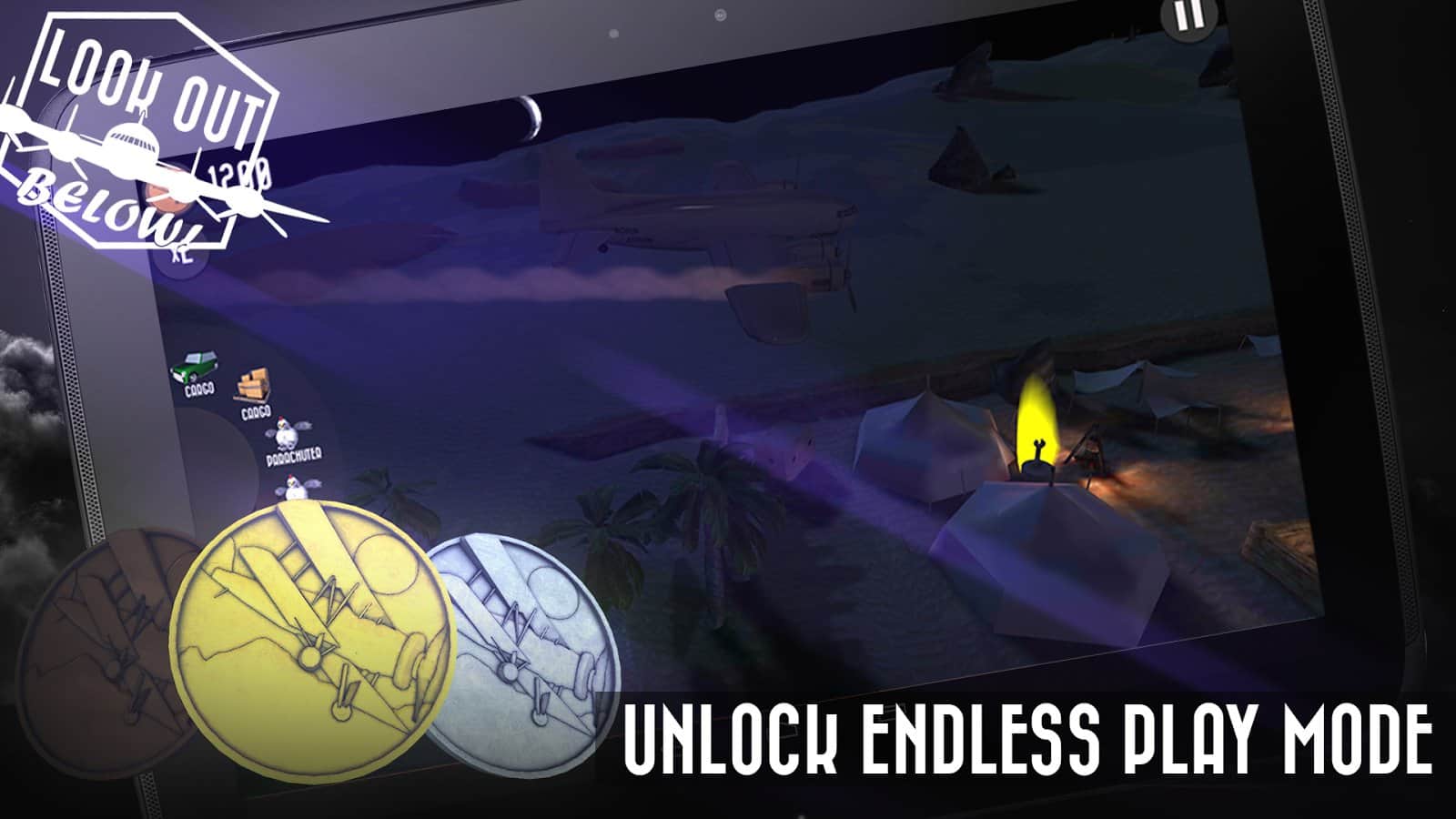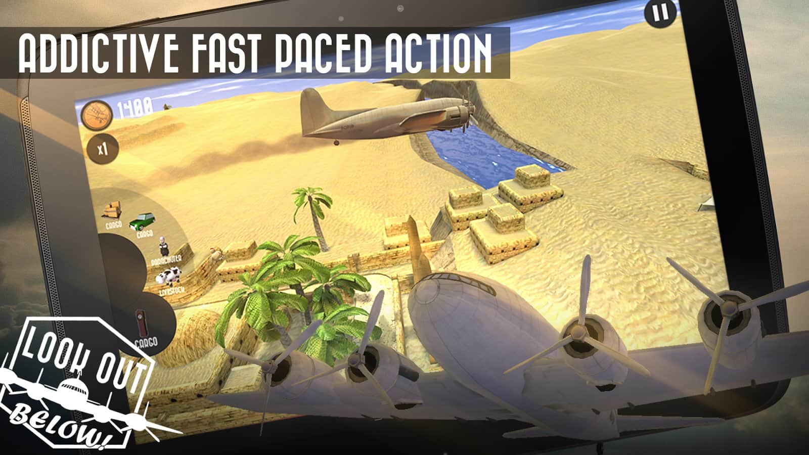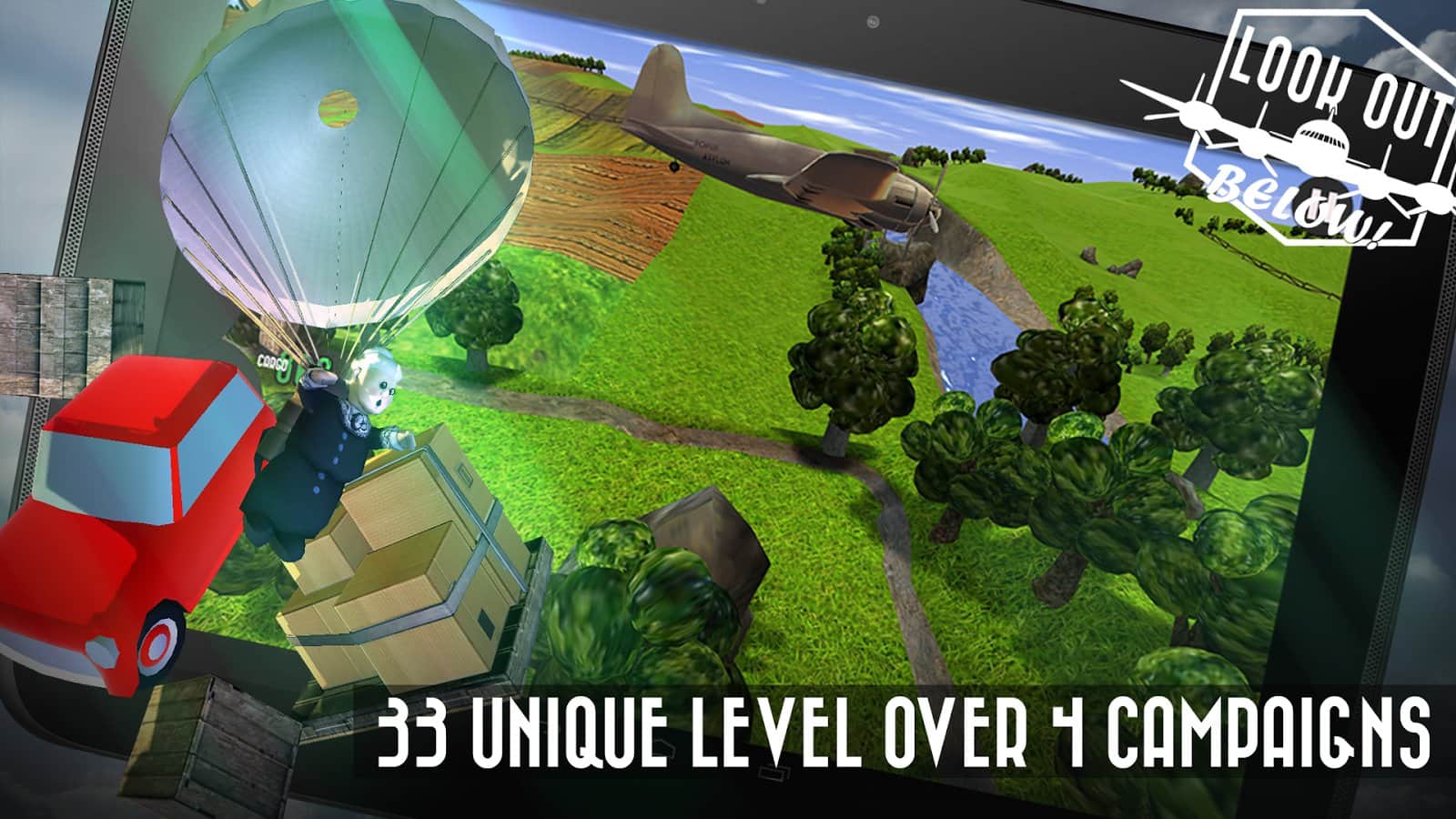 Look Out Below! игра на андроид в которой вам предстоит управлять грузовым самолётом, и сбрасывать различные грузы в военное время. В игре большое количество разнообразных грузов, несколько локаций и различные уровни сложности.