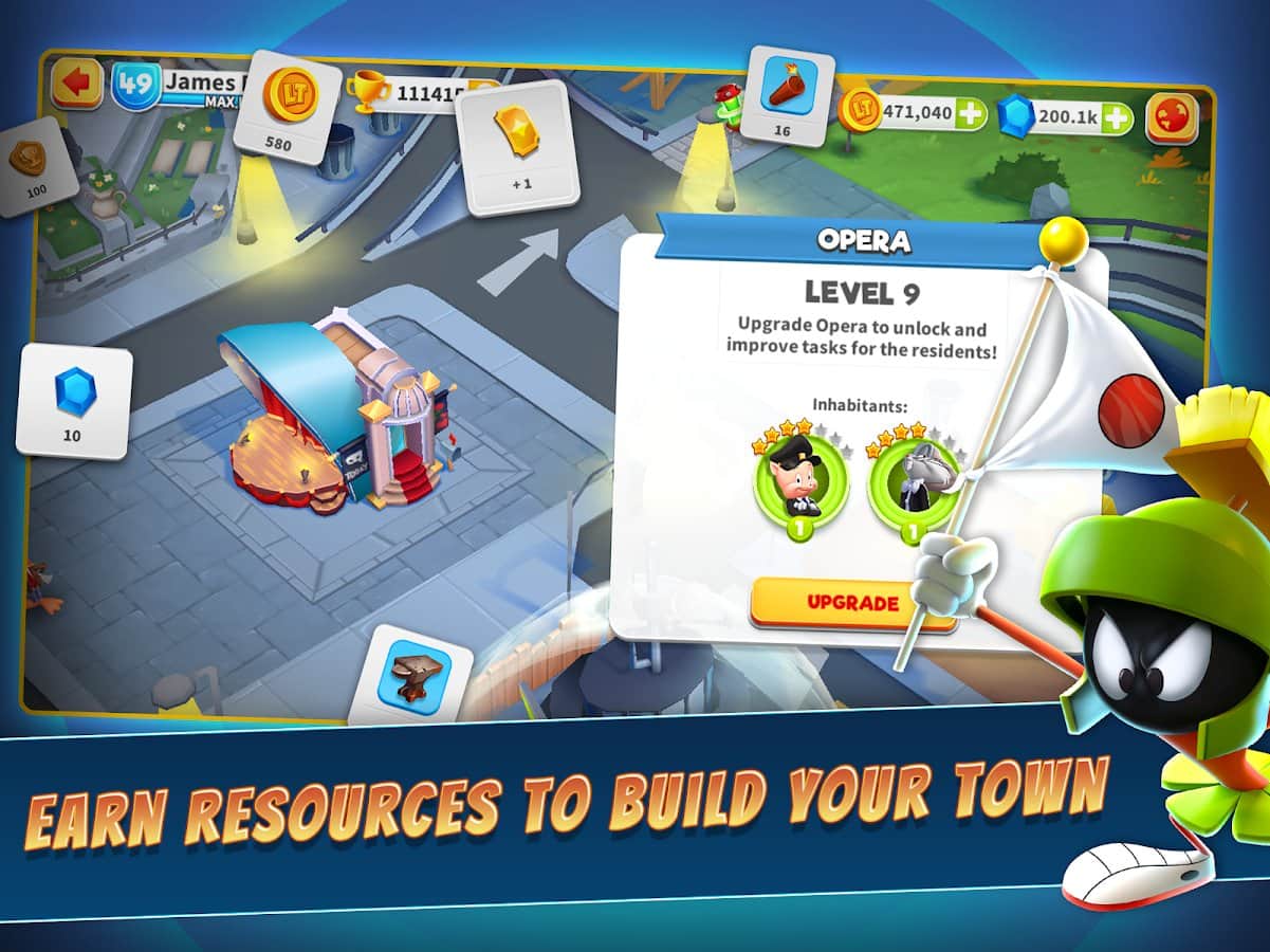 Looney Tunes - После того как Марвин Марсианин похитил всех жителей в этом милом городке, появился всеми нами любимый Багз Банни и случайно поломал его пульт, после чего все персонажи разлетелись в разные стороны. Судьба нашего храброго кролика это восстановление города, а так же возвращение всех его обитателей. Однако собрать их всех будет не просто, ведь есть ещё и разбойники которые постоянно норовят подстрелить нашего милого кролика. Сражайтесь с такими злодеями, стройте город и находите новых персонажей.
