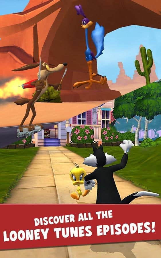 Looney Tunes Dash! - отличный раннер с героями знаменитых мультиков от Warner Bros. Встречайте таких героев как: Bugs Bunny, Road Runner, Tweety Bird и многих других которые были в мультиках Looney Tunes. Бегаем по красочным уровням и стараемся избегать различных препятствий и опасностей. По дороге собирайте как можно больше монеток, различные бонусы тоже пригодятся во время прохождения очередного уровня. Во время прохождения собирайте карты, для того чтобы открыть новые уровни ,а так-же вы можете разблокировать различных героев.