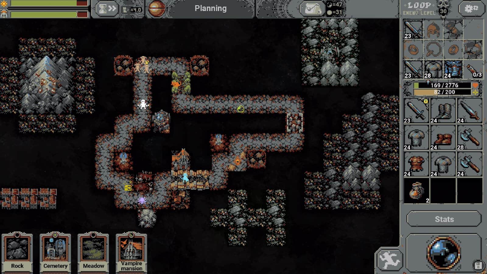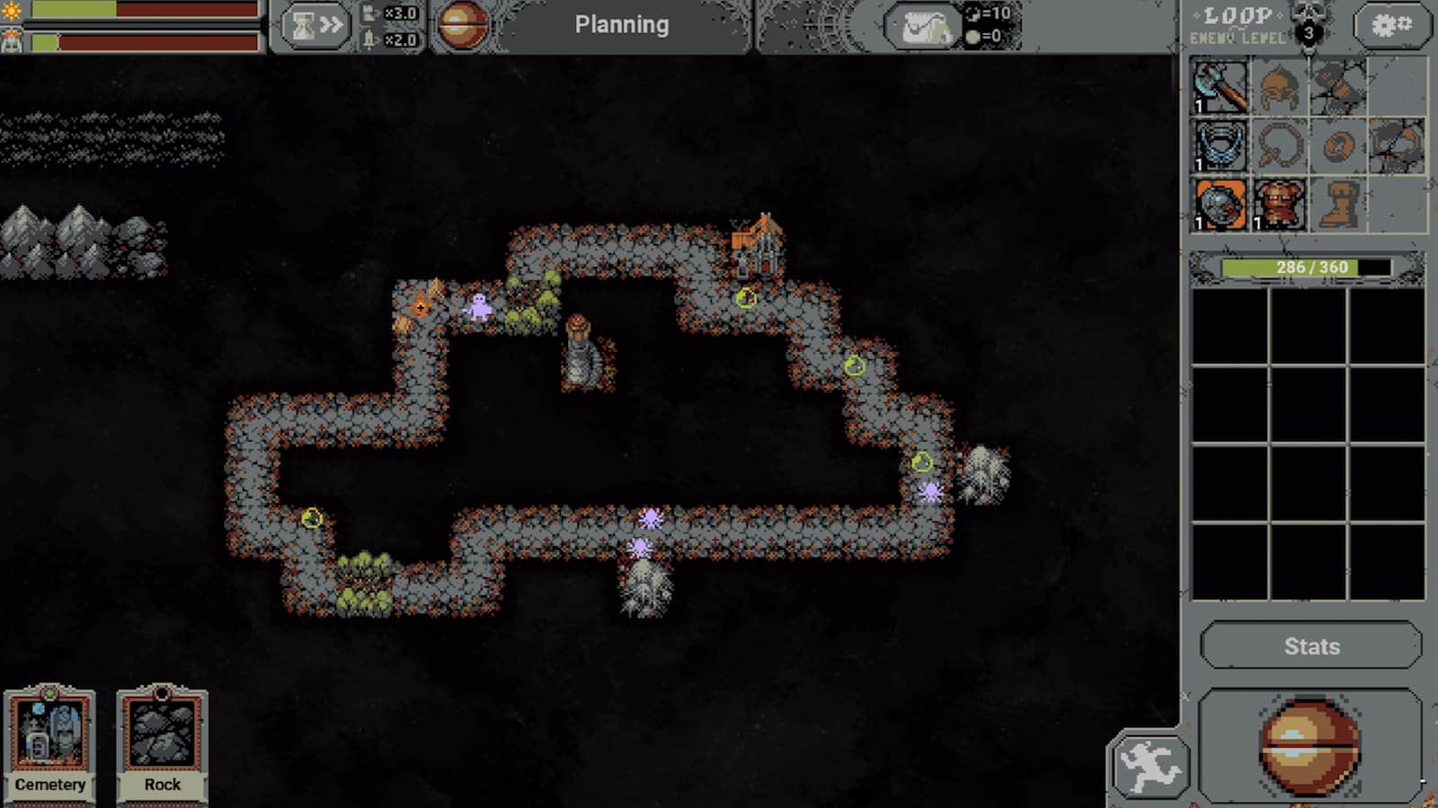 «Loop hero» - это настолько уникальная игра, что я даже не знаю как её описать. По сути, она из себя представляет смесь градостроителя, рогалика и автобатлера, что в результате создаёт что-то необычное. Ваш геймплей - это создание мира, по которому ходит ваш персонаж и сражается с врагами, а по заполнению особой шкалы, приходит босс. «Loop hero» хорош как градостроитель по 2 причинам: