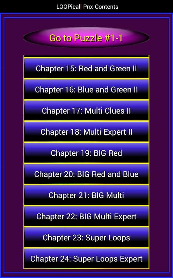 LOOPical – головоломка на андроид, где вы будете рисовать на квадратах петли и соединять их между собой. Сложность игры заключается в том, что вам необходимо провести линию только один раз по сетке и сделать так чтобы ходы у вас не закончились. Рисуйте замкнутую петлю которая будет идти через пустые квадраты на поле только один раз. Некоторые квадраты на поле будут содержать подсказки, а некоторые будут блокироваться черными или белыми блоками. Обращайте внимание на цвет квадратов при игре: желтый – идти по этому пути, красный – идти прямо, синий – необходимо включить и зеленый – три оборота или три прямые подряд.