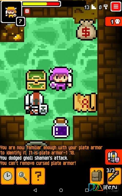 Loot Dungeon Shattered - классическая RPG на андроид, сделанная в пиксельном стиле. В этой игре вашей главной задачей будет спуститься в подземелье и найти там спрятанные амулеты. Выбирайте себе понравившихся героев и отправляйтесь в путешествие, используя их способности. Вам предстоит исследовать много разнообразных комнат, встречаться с всевозможными врагами и собирать нужные вам предметы. Эта игра очень сложна в прохождении ведь в ней вы не сможете сохраниться, если вас убьют, и придется проходить игру заново с новыми генерируемыми уровнями. Исследуйте все таинственное подземелье и найдите все то за чем вы пришли.