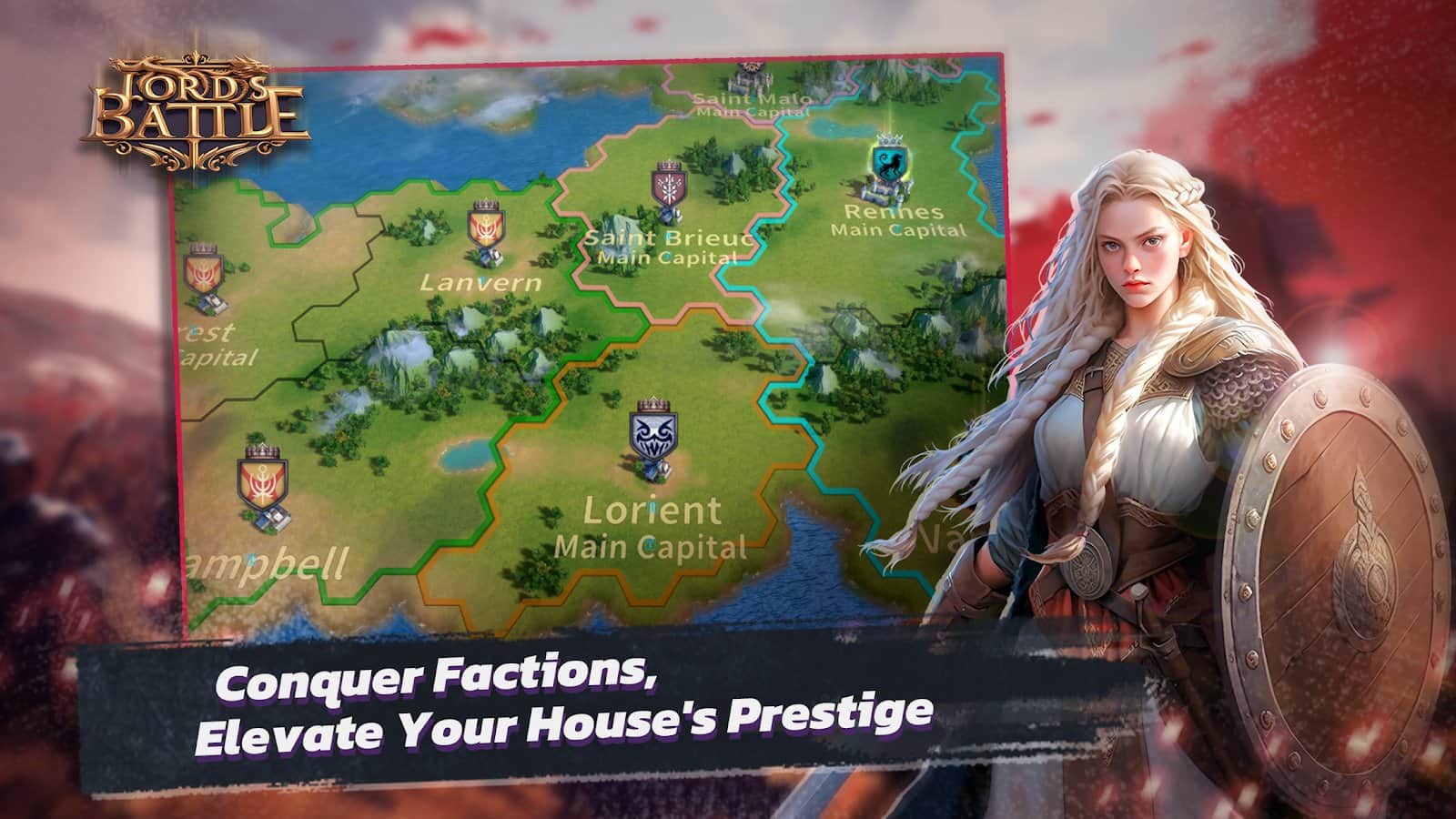 Lords Battle - Вступайте в захватывающий мир политических интриг и войн, став главой могущественного дома в эпической битве лордов. Ваша судьба зависит от вашего тактического гения, способности контролировать территории и управлять отношениями с вашим домом. Цель ясна — завоевывать новые страны, расширять границы вашей империи и прославлять свой Дом как величайший в мире. Ваш путь к власти наполнен вызовами, включая разрешение конфликтов между подчиненными и решение проблем, стоящих перед процветающей империей.