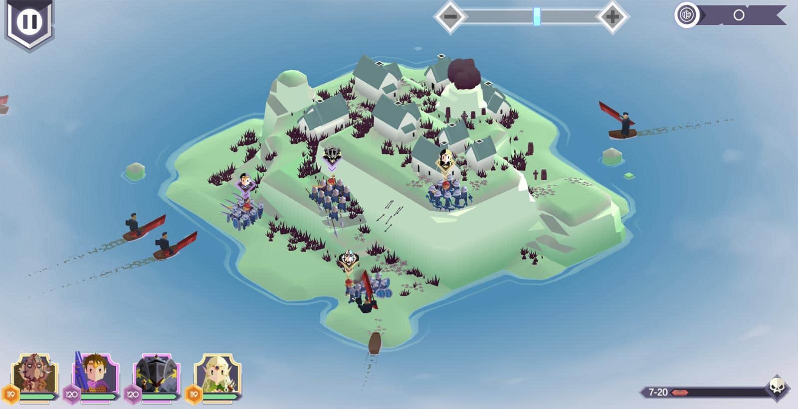 Первая и самая главная проблема это отсутствие нормальной прорисовки войск, отсутствие анимации, и даже баевка которая и в Bad North особо и не было здеся так себе.