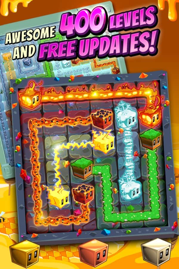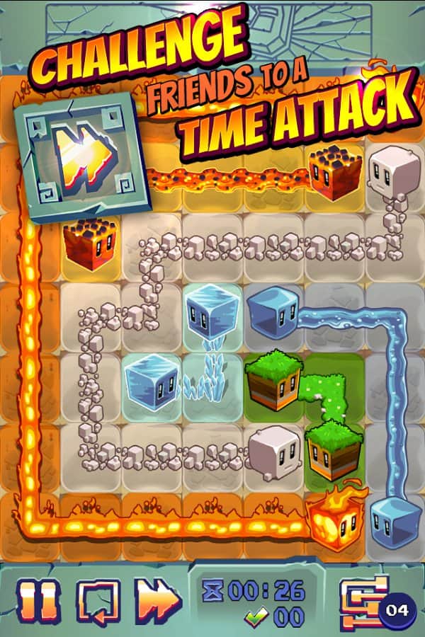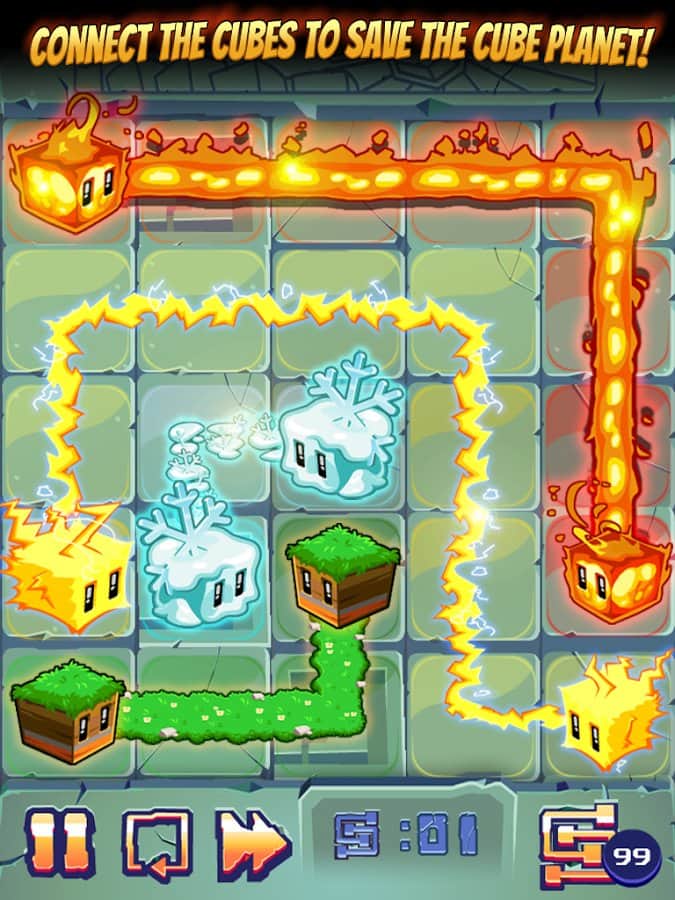 Lost Cubes - эта головоломка для андроид - отличный тайм-киллер, хорошо выполненный и приятный по геймплею. Суть такова - на поле расположены парные кубики с изображением разных стихий - огонь, вода, лава, ветер и пр. Ваша задача провести линию, которая может ломаться только под прямым углом, от одного кубика до его пары. Причем сделать это так, чтобы на поле не оказалось ни одного свободного квадратика. Если самому справиться окажется сложным, всегда на помощь придет подсказка. И еще - чем лучше и без подсказок вы пройдете уровень, тем больше звезд получите. Множество миров и уровней - отличный способ провести время!
