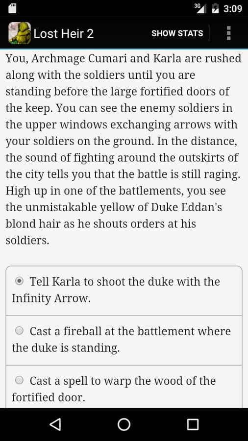 Отличная текстовая ролевка в духе "старой школы". Хорошо написанный текст, статы и ваше воображение. Затянуть может надолго, если имеешь хотя бы средние знания англ. Я понимаю процентов 90 из всего. Те кто говорят, что все это слишком сложно все же не правы. Игра отлично сочетает в себе приятное (нелинейное фентези приключение) и полезное (изучение языка как такового), чтобы повысить комфорт от игры можно дополнительно скачать переводчик из маркета для разбора особо сложных слов и понятий. Не ленитесь ребят, эта игра того стоит. PS Дорогая #@$&🤬, прошу вас так же добавить и первую часть сей приключения. Это составные части будущей трилогии и они продолжают друг друга, есть даже функция переброса персонажа. Давайте вместе научим наших игроков не бояться английского, не так уж он и сложен. Всем добра)