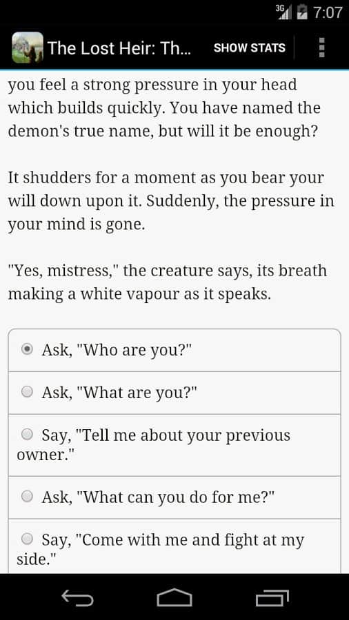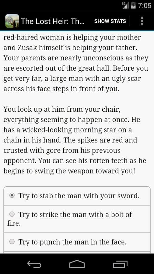 Lost Heir: The Fall of Daria – интерактивная игра-книга на андроид, состоящая полностью из текстов. В этой игре вы узнаете историю молодого принца, который хочет вернуть себе право на трон Дарии. Когда принц был еще совсем мал, его родителей убили злые демоны, пришедшие в этот мир по приказу узурпаторов. Теперь вашей задачей будет помочь принцу или принцессе занять свое место на троне. Эта игра не имеет ни какой графики и звуков, вы погружаясь в игру будете воссоздавать все сцены в своем безграничном воображении. Воспитайте отважного принца или сделайте его благородным рыцарем, злым вором, отпетым мошенником, священником или могущественным волшебником все, что вы захотите, теперь жизнь молодого принца находиться в ваших руках.